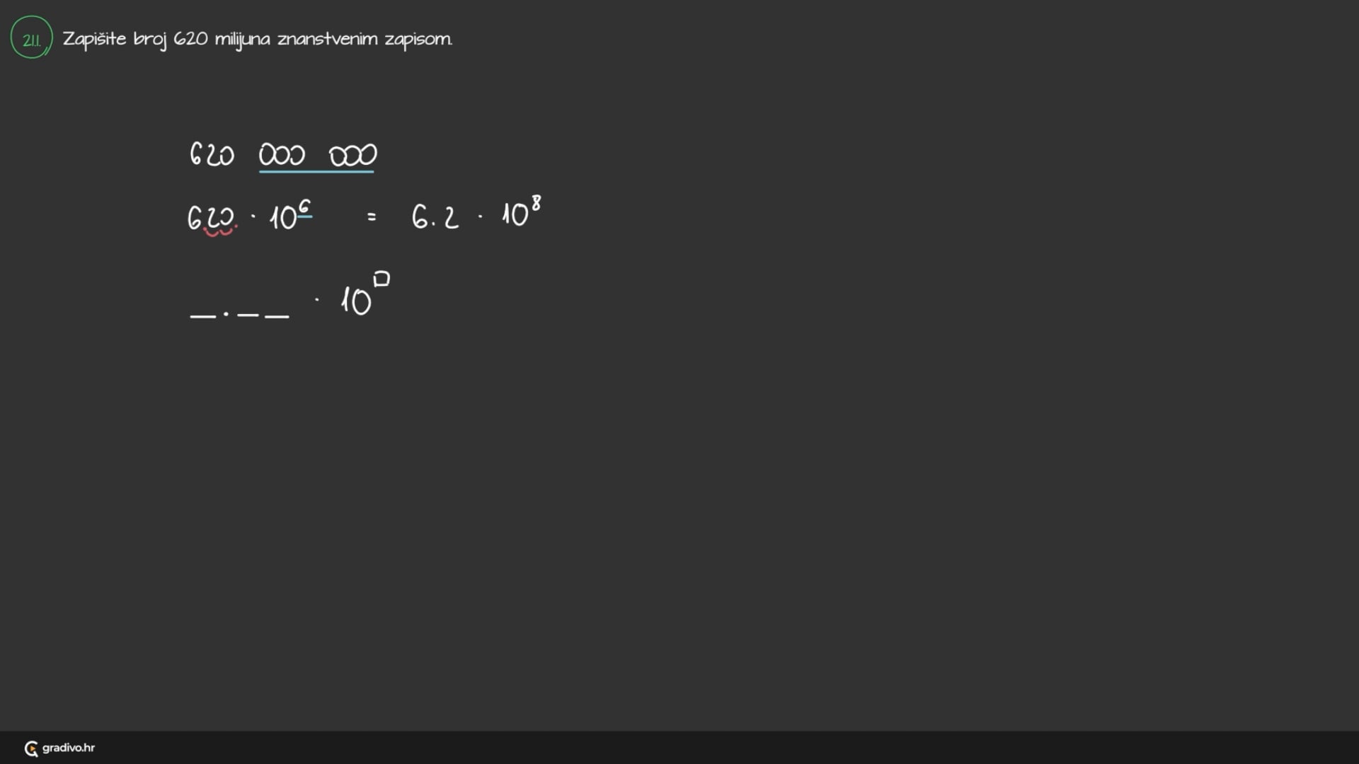 Zapišite broj 620 milijuna znanstvenim zapisom.