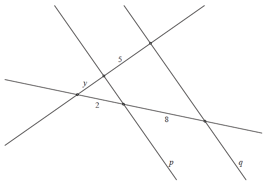 Koliko je $y$ sa skice ako su pravci $p$ i $q$ usporedni?