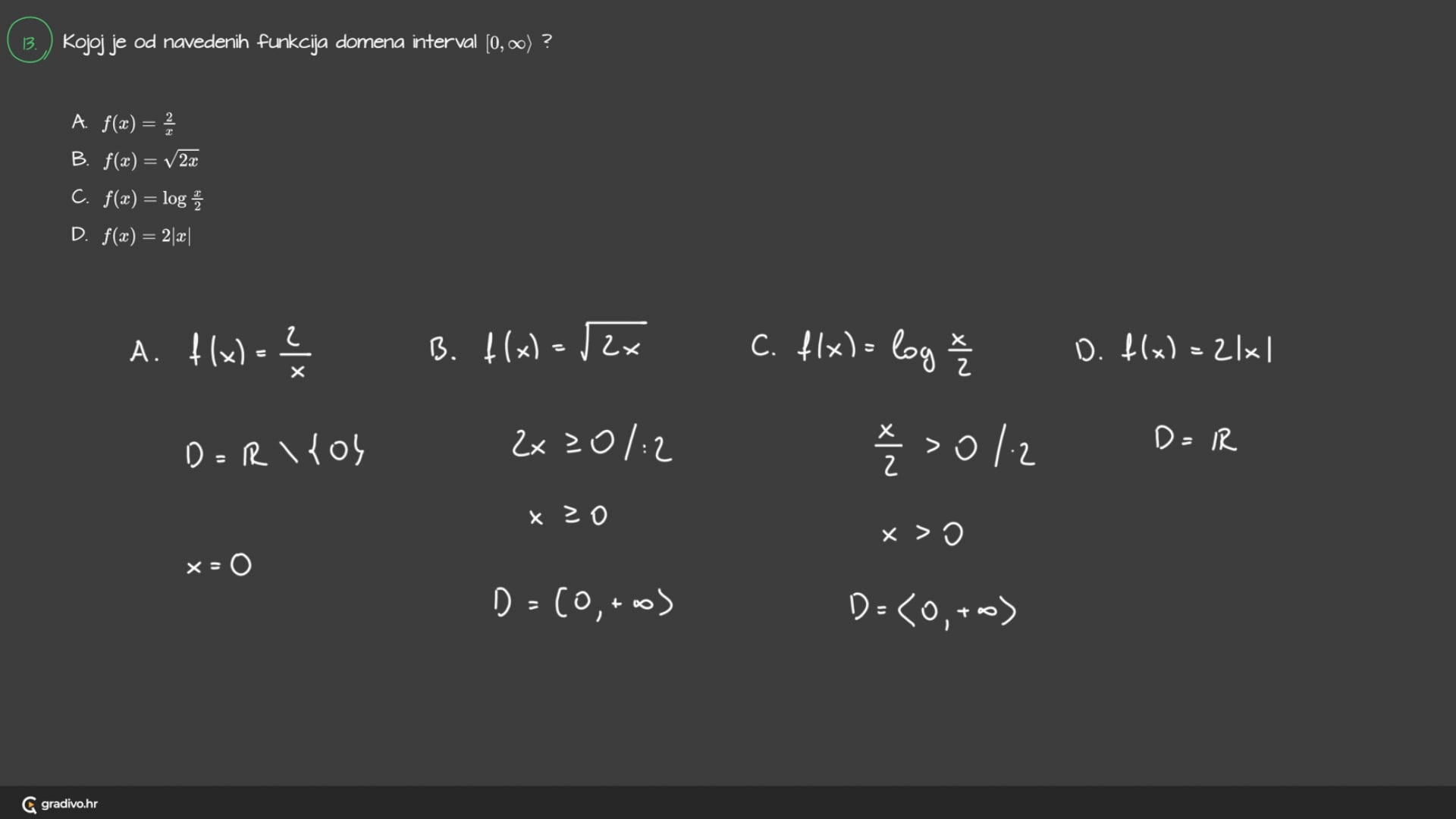 C. $f(x)=\log \frac{x}{2}$