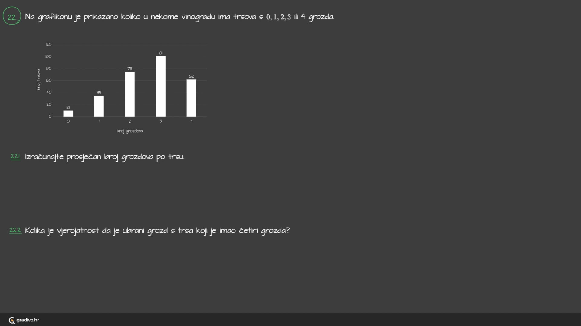 22.1. Izračunajte prosječan broj grozdova po trsu.