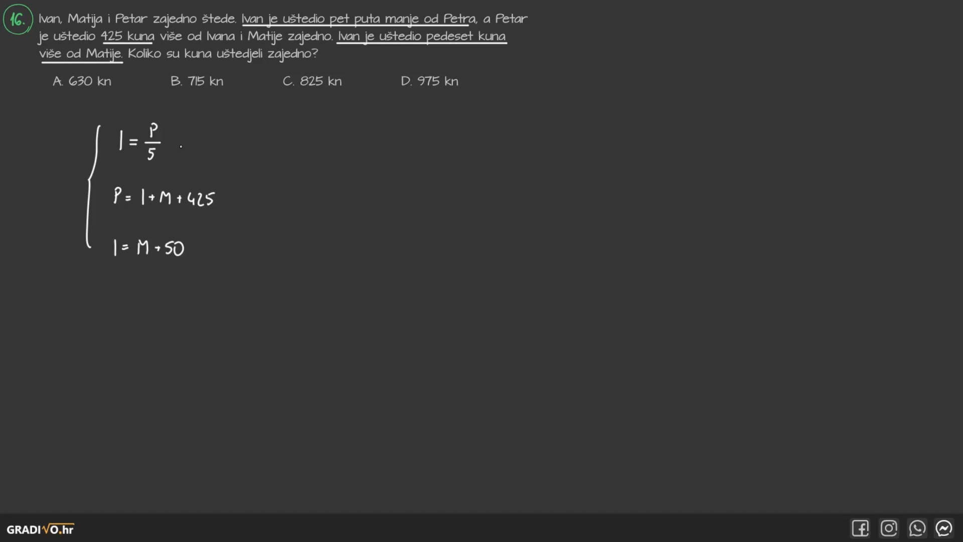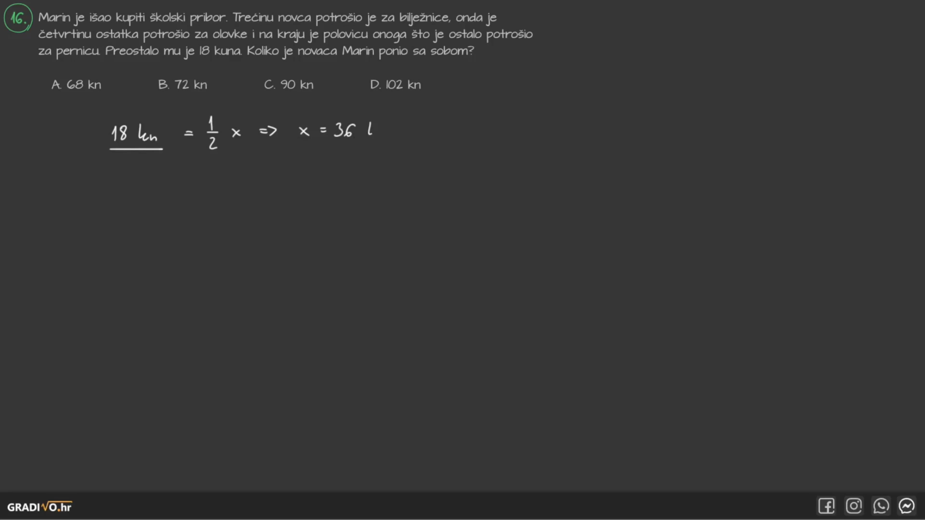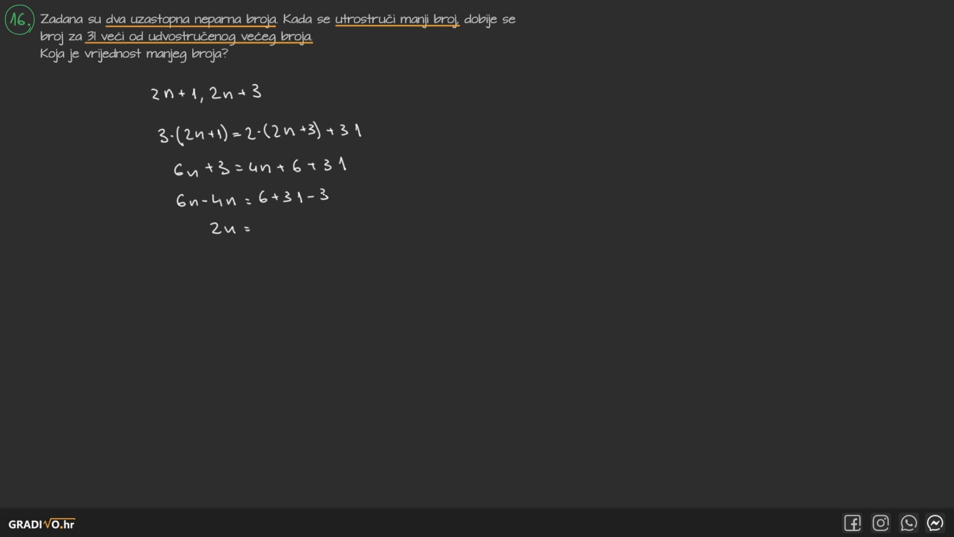 2. korak - Sve nepoznanice stavimo na lijevu stranu, a sve brojeve na desnu.