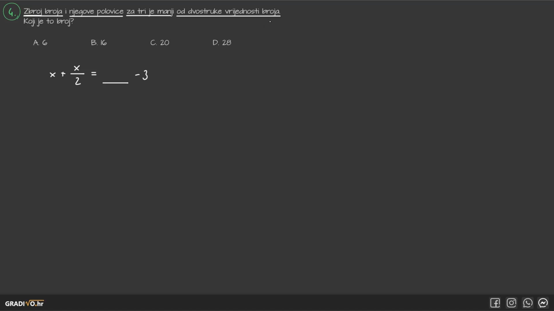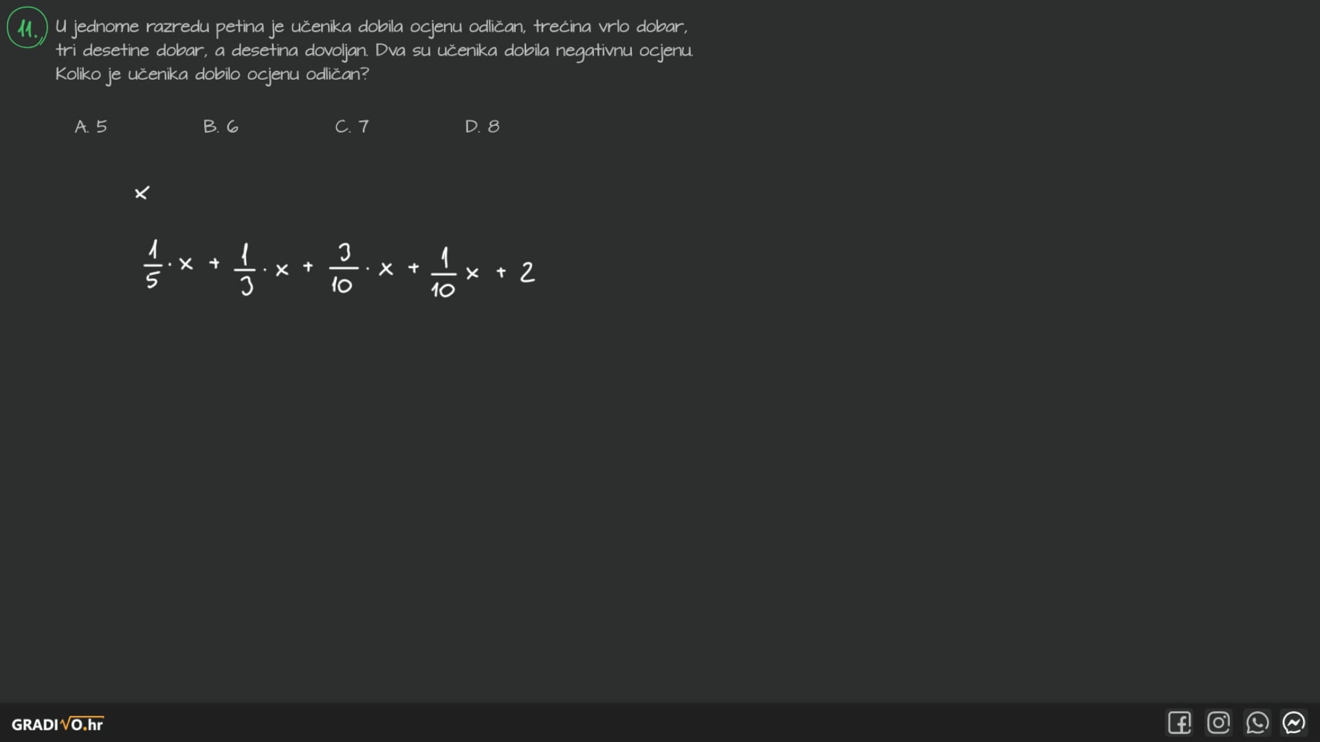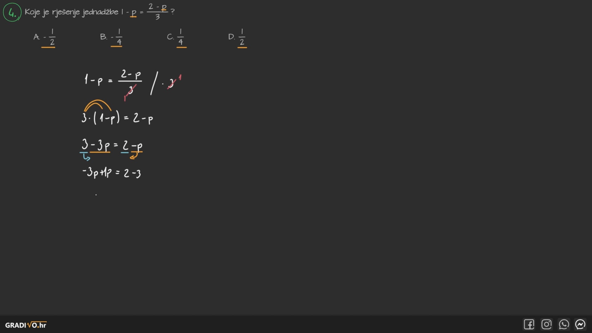 4. korak - Podijelimo cijelu jednadžbu s bilo čim što stoji ispred nepoznanice, tj. s brojem koji stoji ispred nepoznanice.