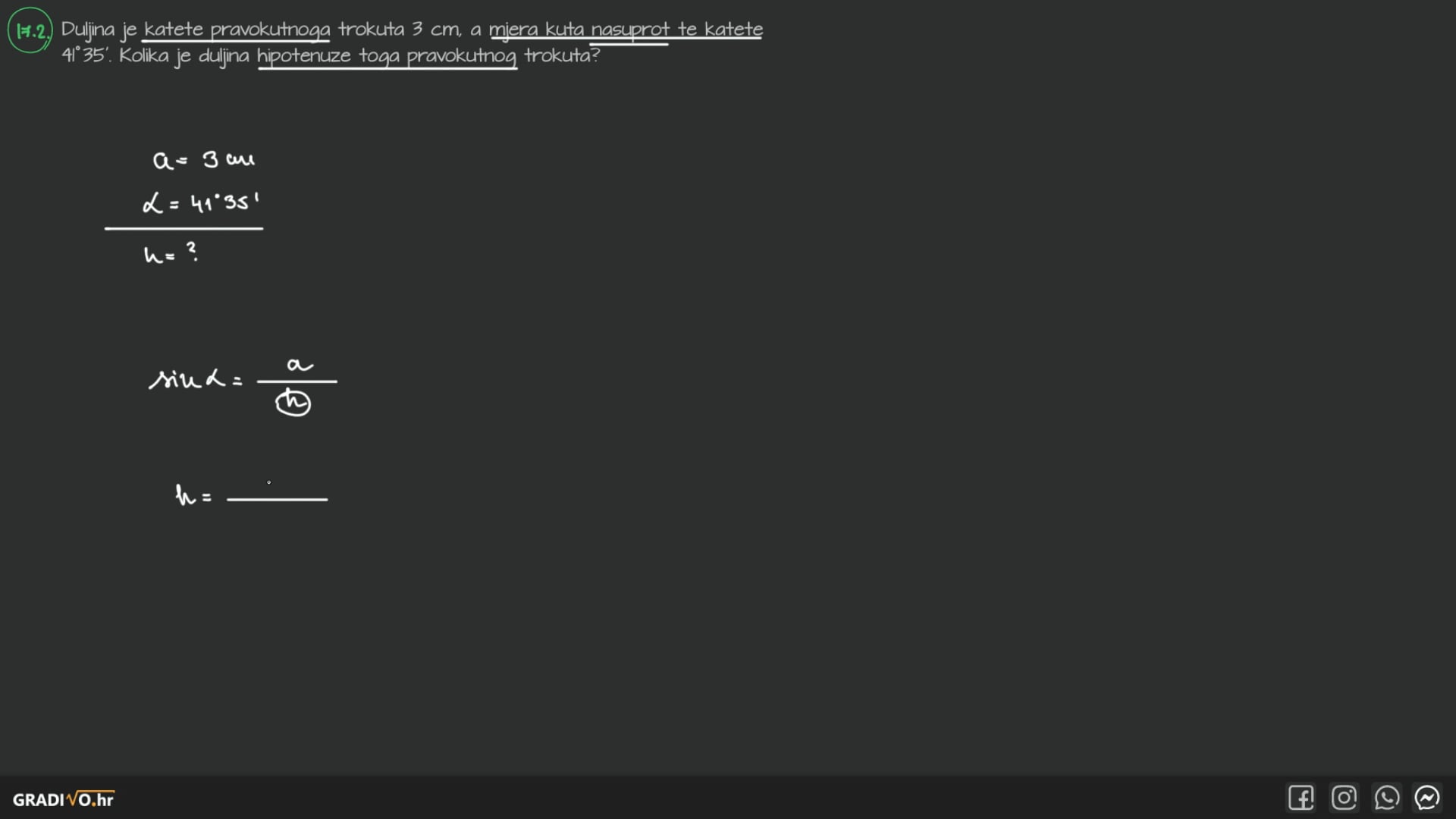 Sinus je omjer nasuprotne katete i hipotenuze. Za kut $\alpha$, oznaka je $\sin\alpha$.