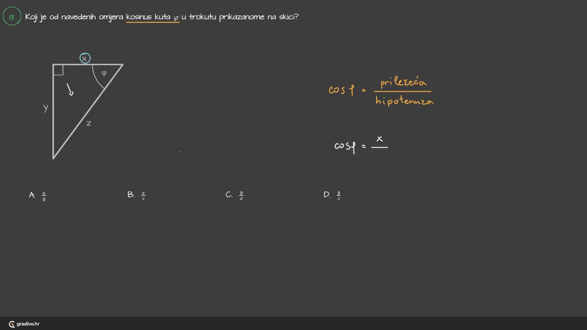 Priležeća kateta je ona koja se nalazi uz kut, a da nije hipotenuza.