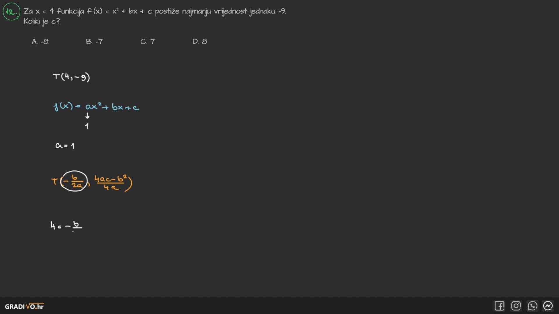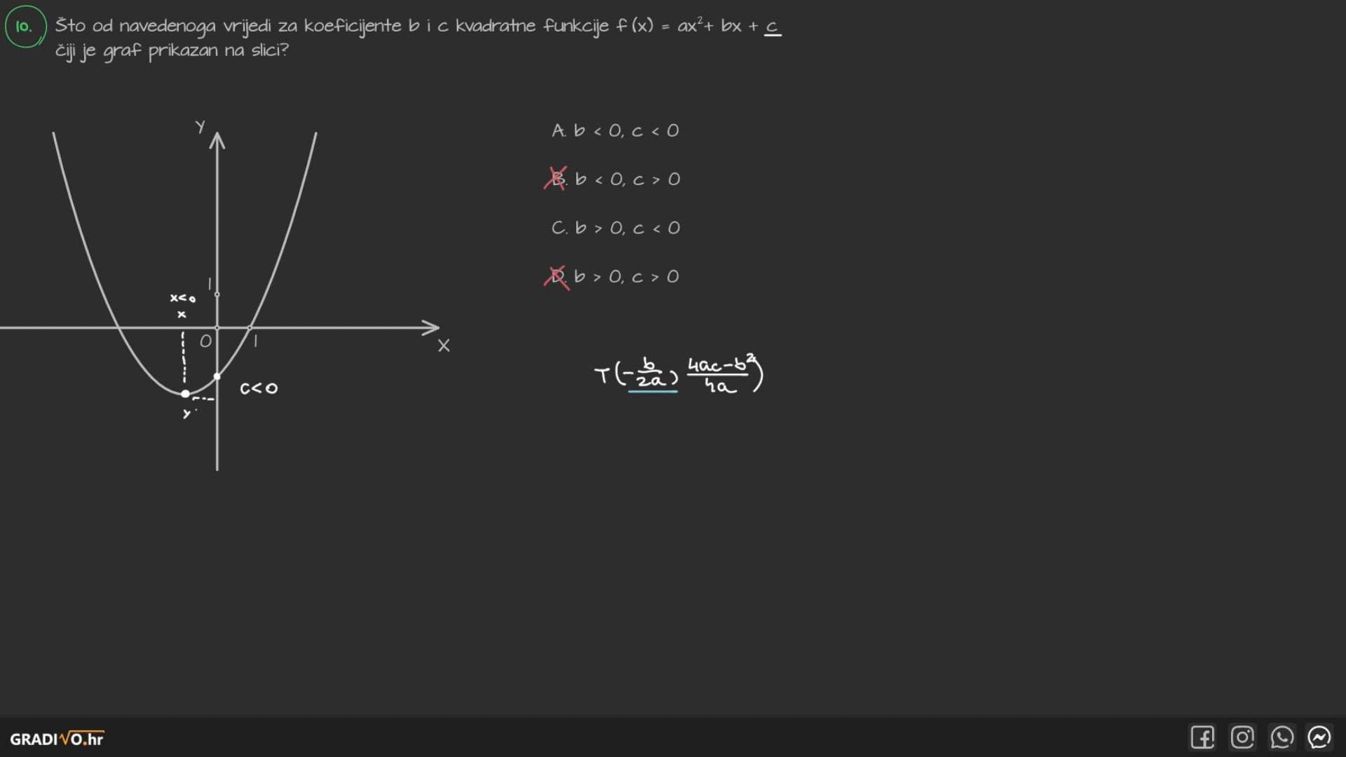 Tjeme parabole$ x_{0}=-\frac{b}{2 a} \quad i \quad y_{0}=\frac{4 a c-b^{2}}{4 a} $