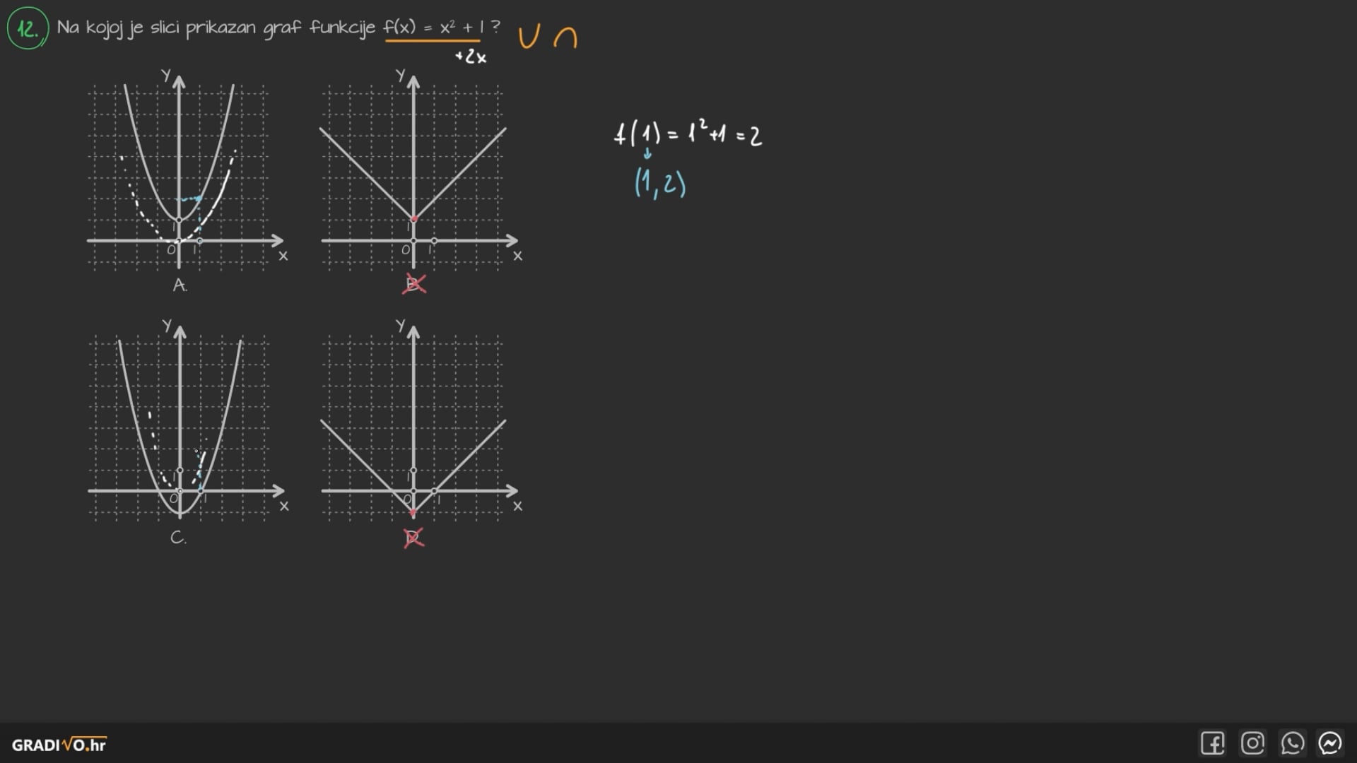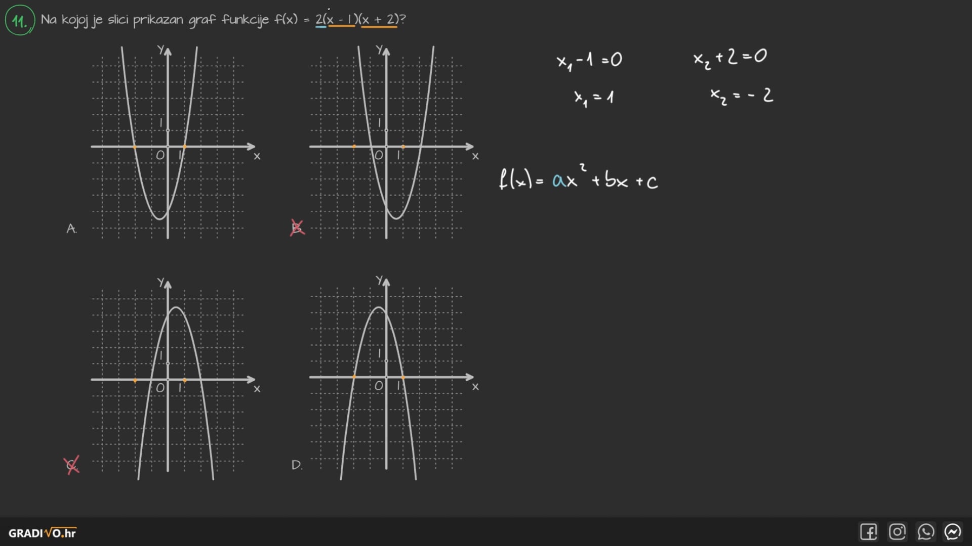 - $a > 0$ $\implies$ otvor okrenut prema gore, tj. $a$ je pozitivan pa se parabola "smije" :)