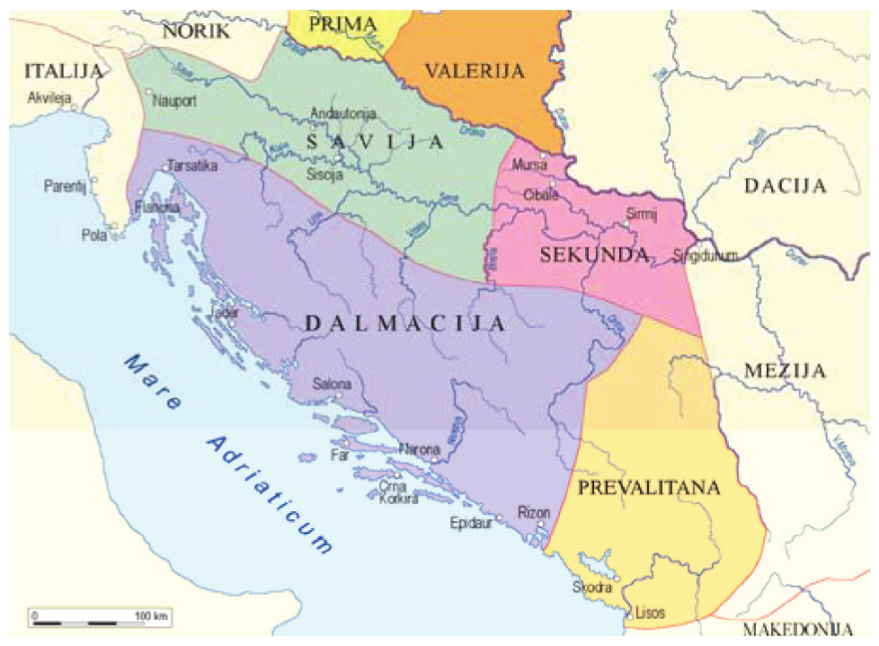74.1. U vrijeme kojeg rimskog cara je izvršena podjela prostora prikazana na povijesnom zemljovidu?