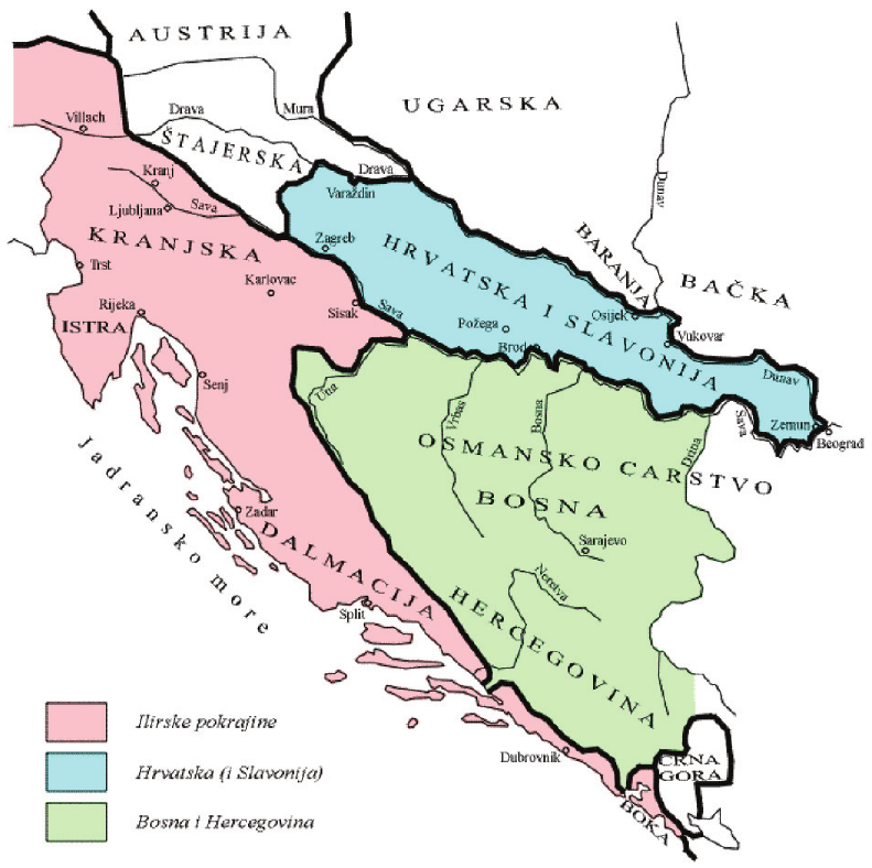 77. Analizirajte povijesni zemljovid hrvatskih zemalja i odgovorite na postavljena pitanja.