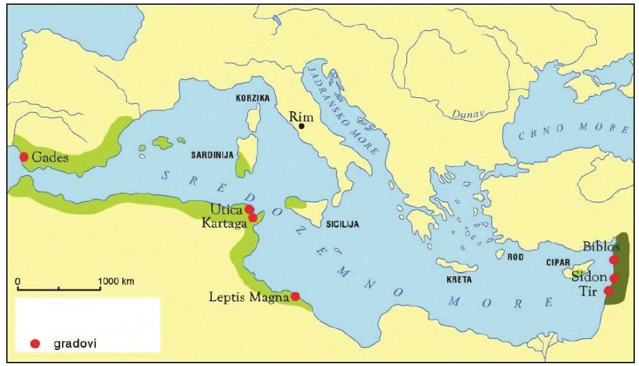 Kolonije kojega starovjekovnog naroda prikazuje povijesni zemljovid?