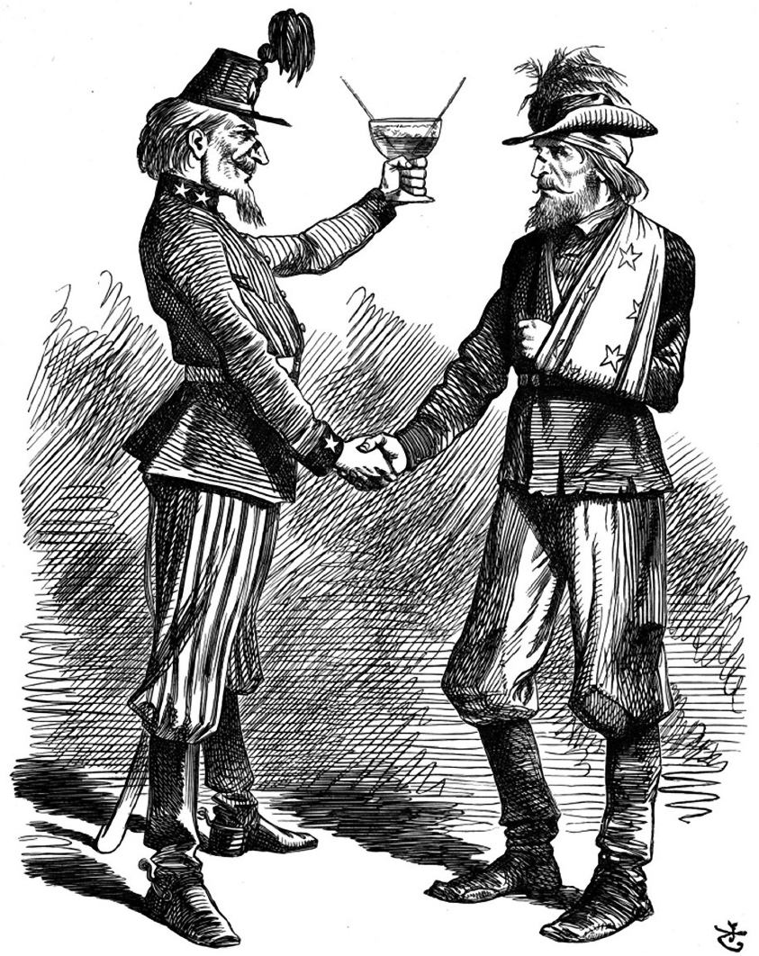 Pukovnik Sjever (pukovniku Jugu): Brate, pretpostavljam da ne možemo obojica pobijediti; zato se rukujmo i nazdravimo.
