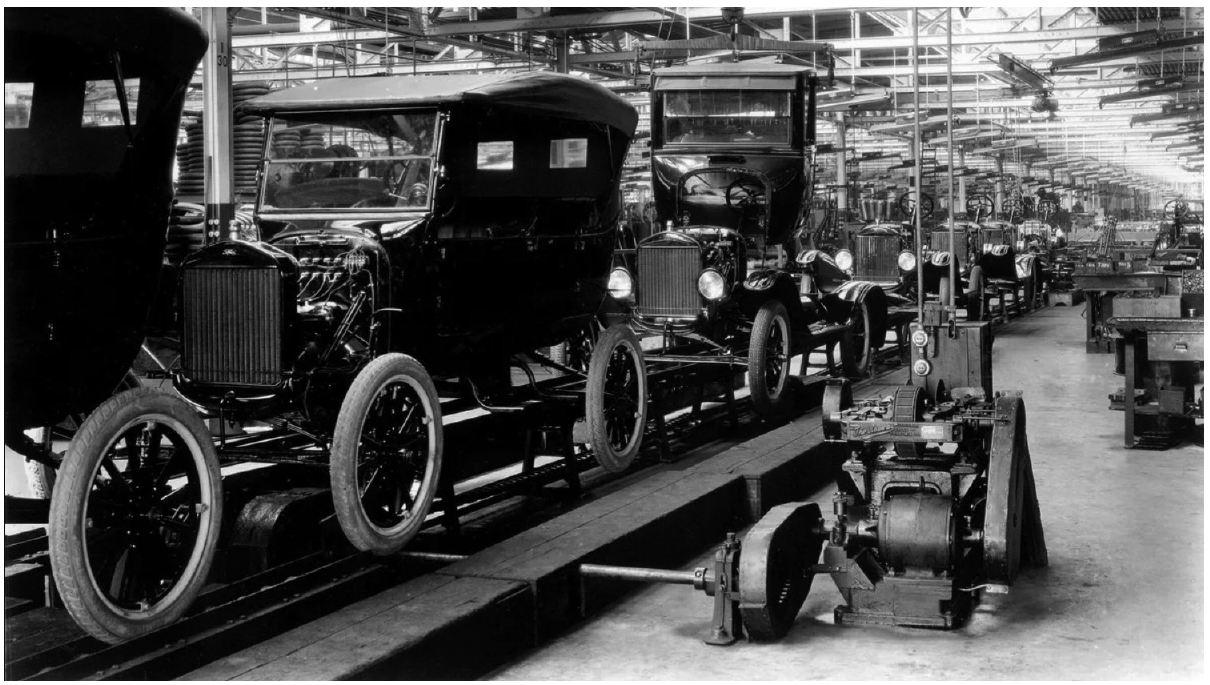 D. primjena pokretne trake u proizvodnji