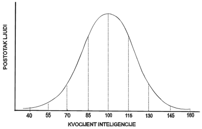 Na krivulji raspodjele inteligencije u populaciji osjenčajte dio koji se odnosi na populaciju s kojom radi Tonkin tata, odnosno na osobe s intelektualnim teškoćama.