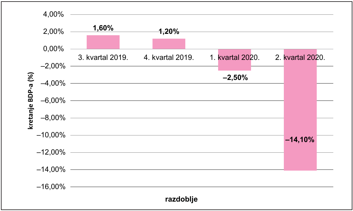 Grafički prikaz 1. Utjecaj pandemije bolesti COVID-19 na kretanje bruto domaćega proizvoda u Europskoj uniji