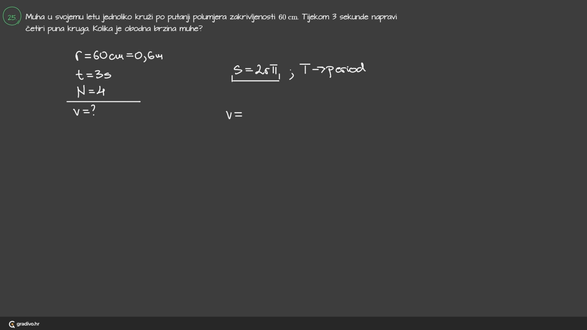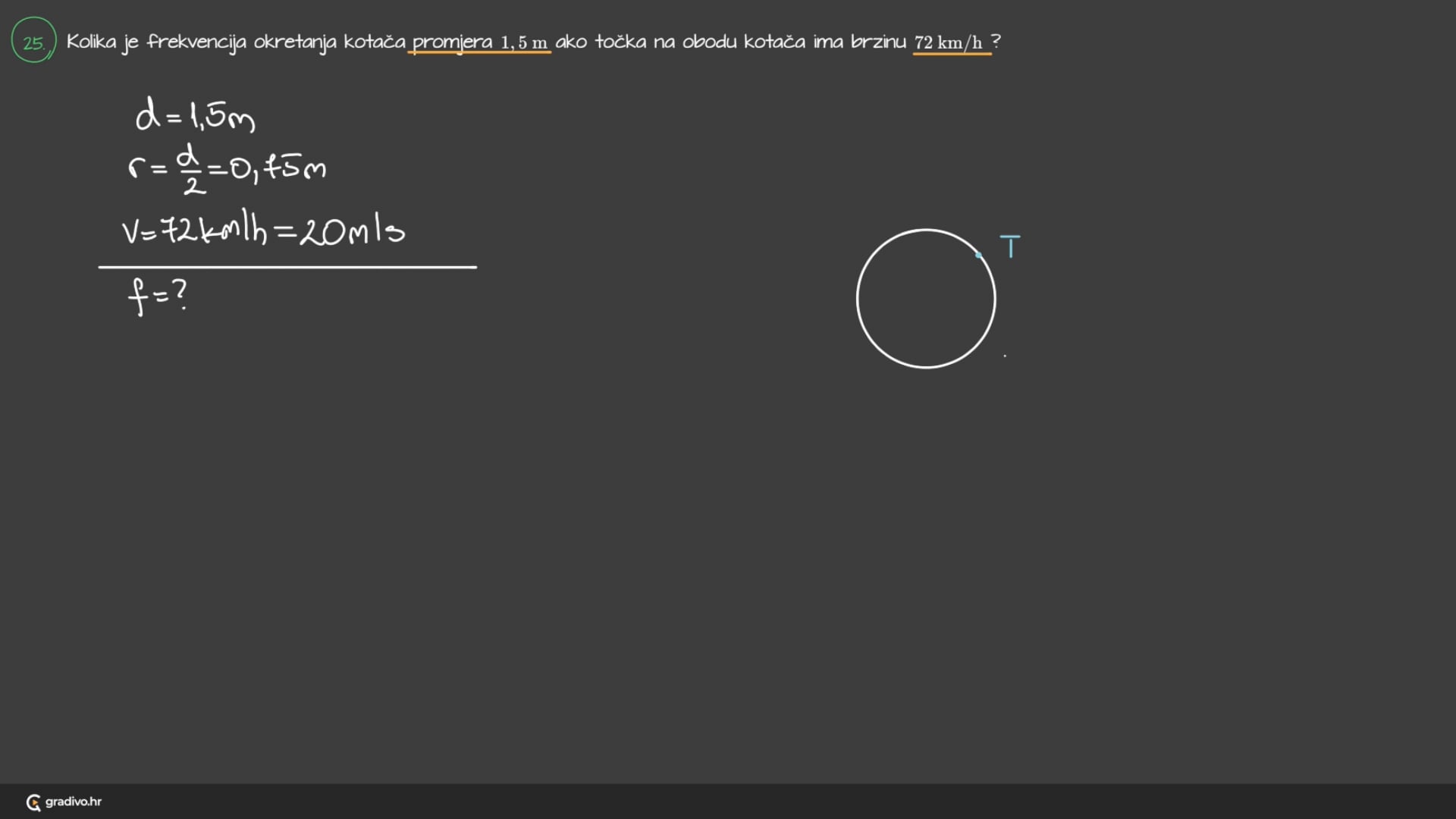 \(v = \frac{s}{t} = \frac{2r\pi}{T} \)Kutnu brzinu \(\omega\) najčešće definiramo kao broj okretaja u sekundi (radijan/sekunda). Odnosno, to je brzina promjene položaja pri kružnom gibanju.