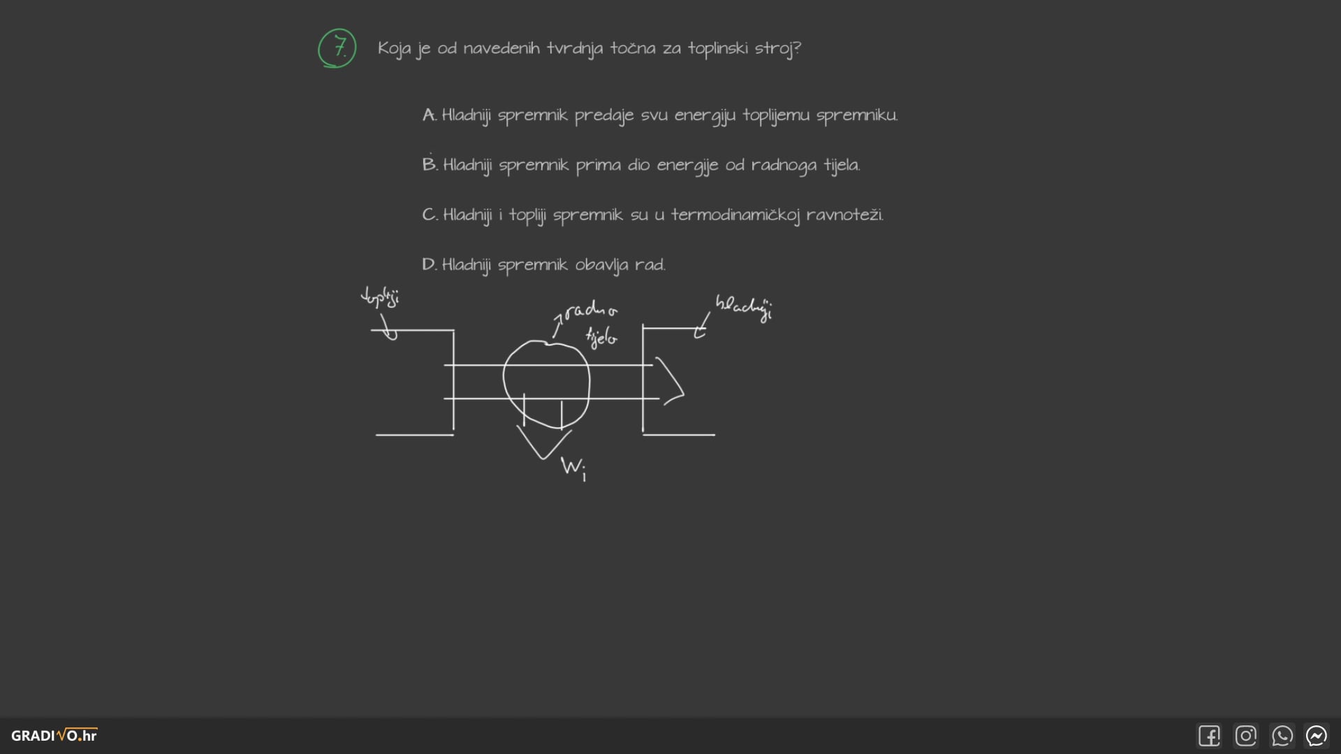 Toplinski stroj se sastoji od dva spremnika različitih temperatura (topliji i hladniji spremnik) između kojih je radno tijelo.