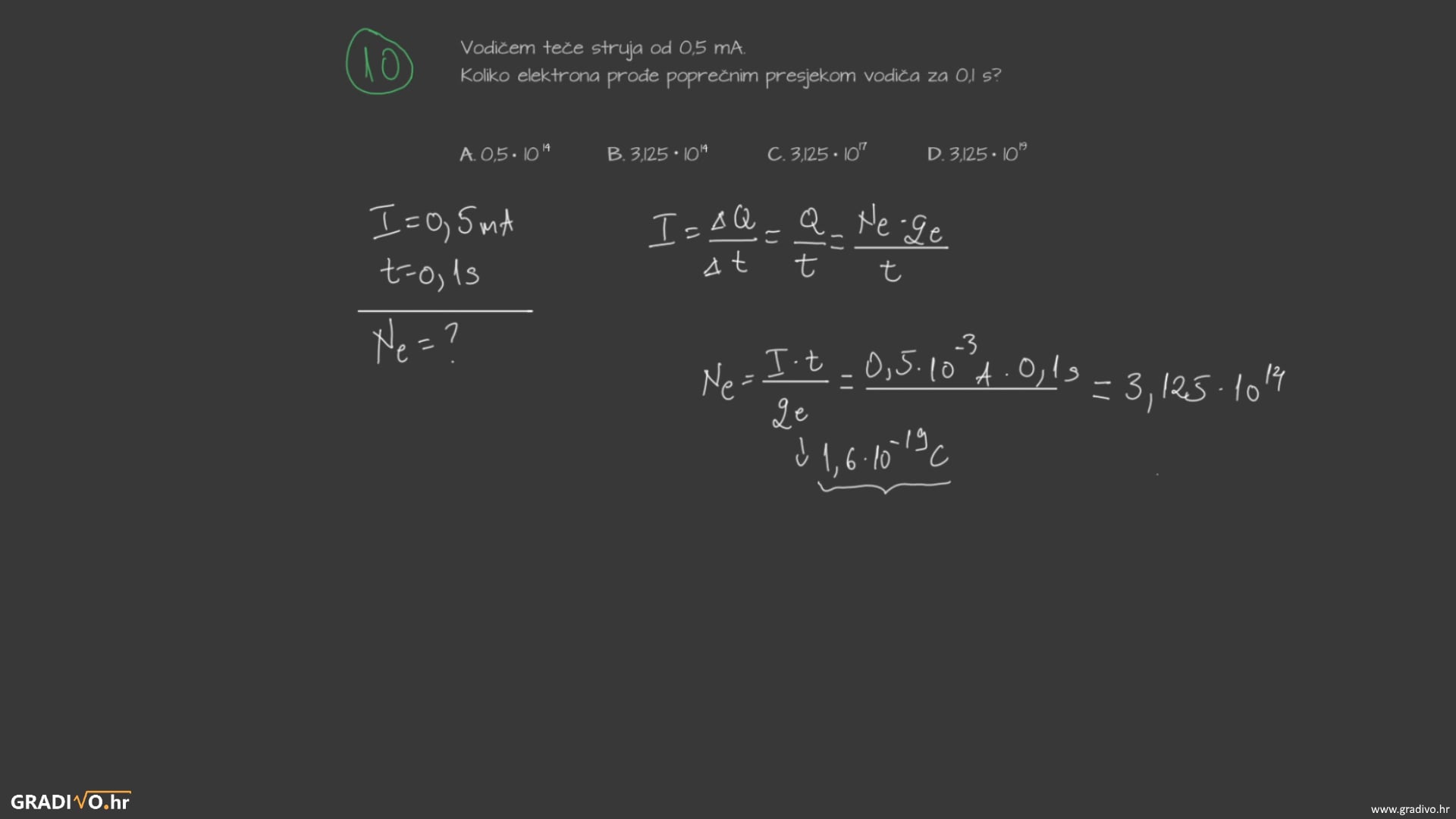 U vodičima (metalima) električnu struju uzrokuje gibanje slobodnih elektrona. Koncentraciju tih elektrona po jedinici volumena vodiča označavamo s \(n\) i definiramo kao omjer broja elektrona \(N\) i jedinice volumena \(V\). Ti elektroni nose elementarni naboj \(e\) i u vodiču gibaju prosječnom brzinom \(v\) kroz površinu poprečnog presjeka \(S\). Jakost struje jednaka je: