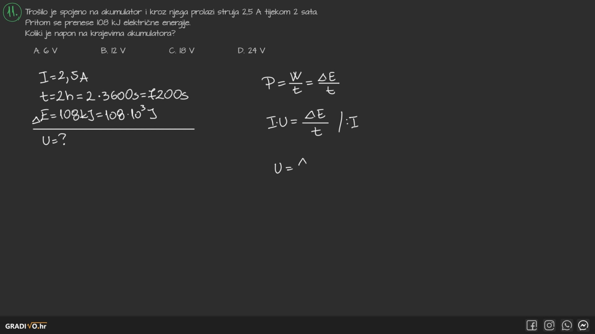 Gustoća struje je veličina koja nam govori o količini struje (u amperima) koja prođe nekom površinom vodiča. Računamo kao omjer jakosti struje i površine presjeka, a njezina je mjerna jedinica [\(\mathrm{A/m^2}\)].