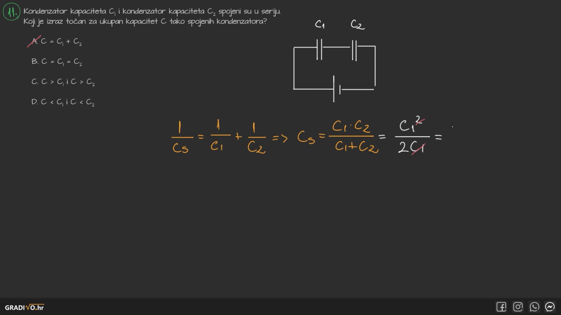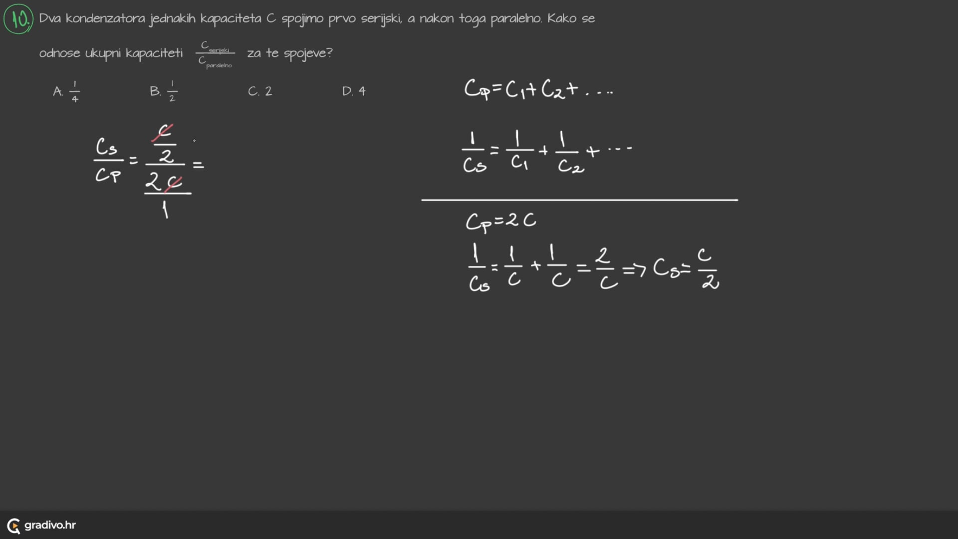 Ukupni kapacitet serijskog spoja kondenzatora računamo po formuli: