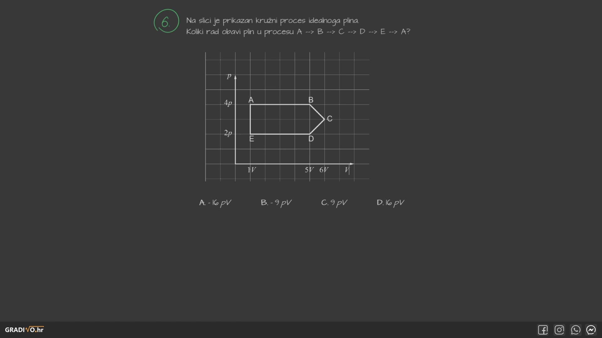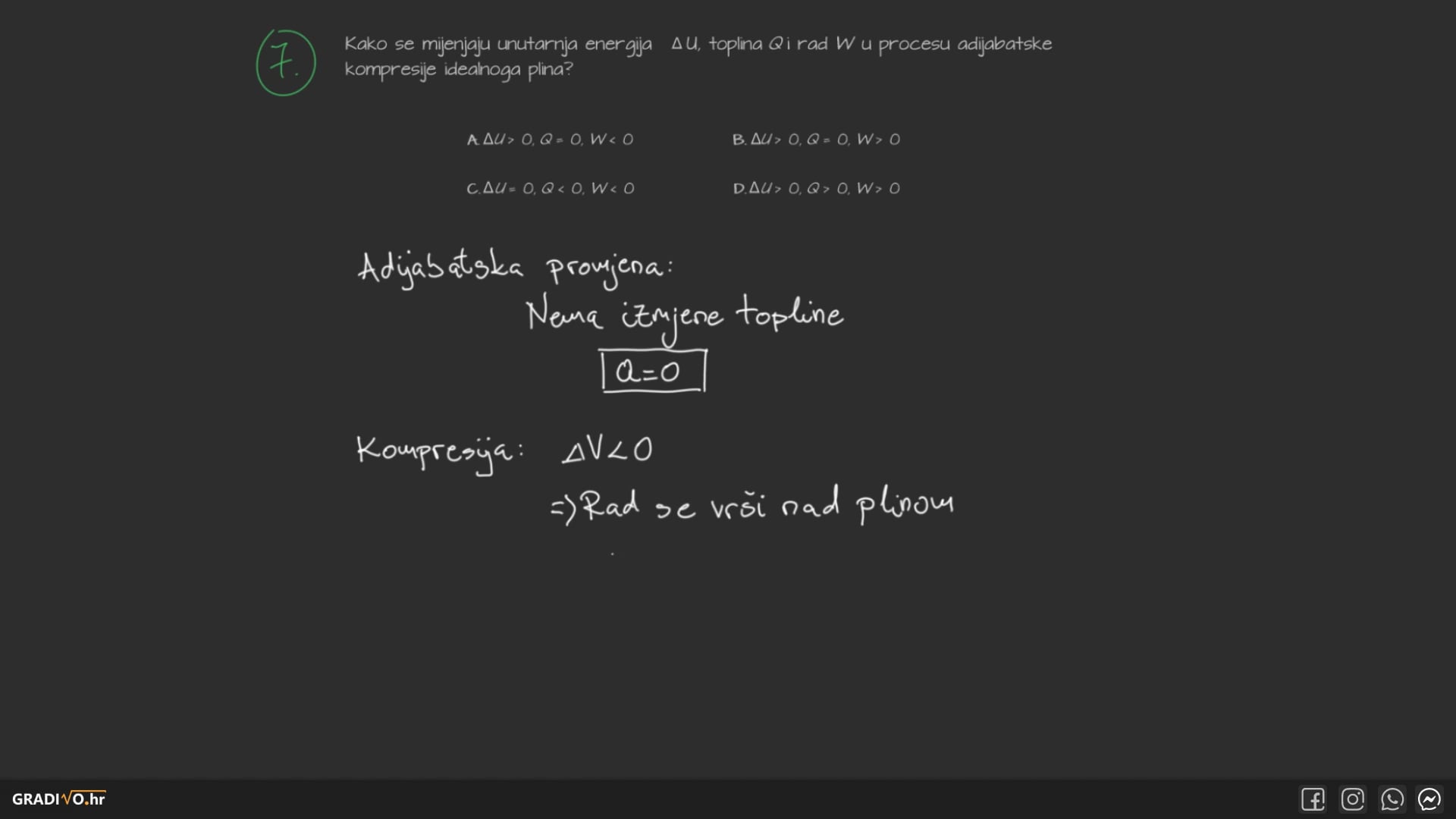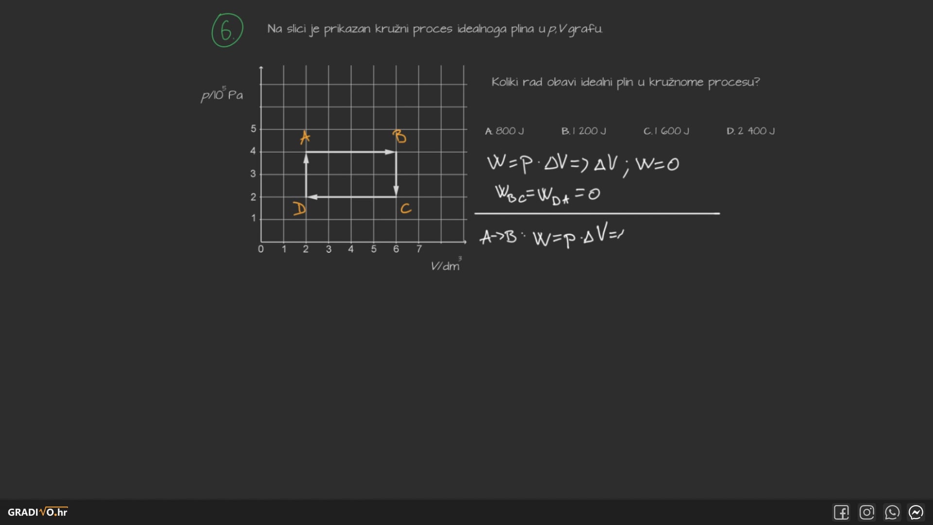 U svakom kružnom procesu promjena unutarnje energije \(\Delta U\) je 0, što znači da će toplina biti jednaka obavljenom radu ako gledamo početnu i konačnu točku.