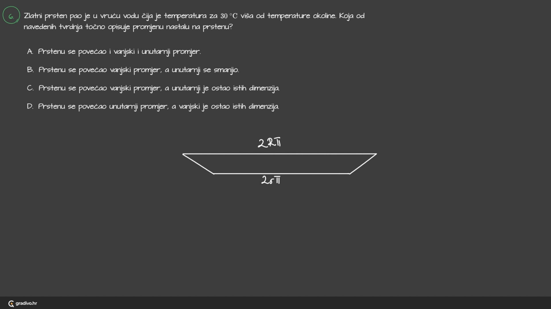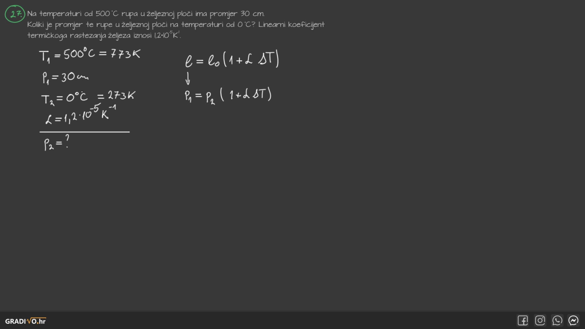 Toplinsko širenje je svojstvo tvari da mijenja (povećava) svoj oblik (duljinu, površinu ili volumen) uslijed promjene (povećanja) temperature. Koeficijent toplinksih širenja označavamo s \(\alpha \) (linearno) i \(\gamma\) (volumno) i oni su specifični za svaku tvar.