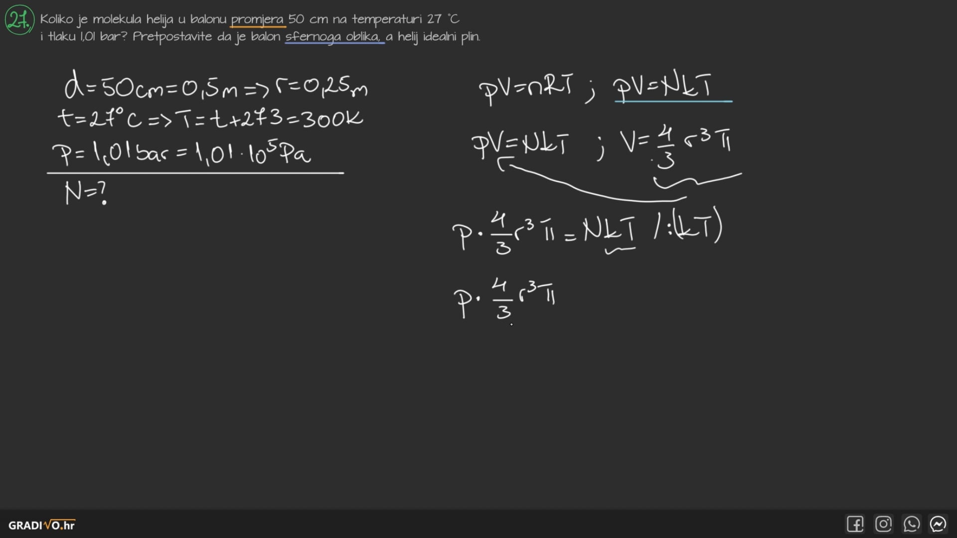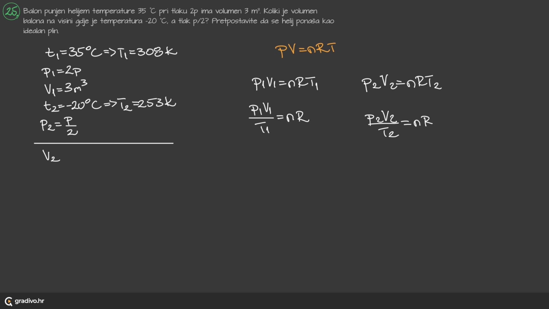 Idealni plin opisujemo jednadžbom stanja koja glasi: