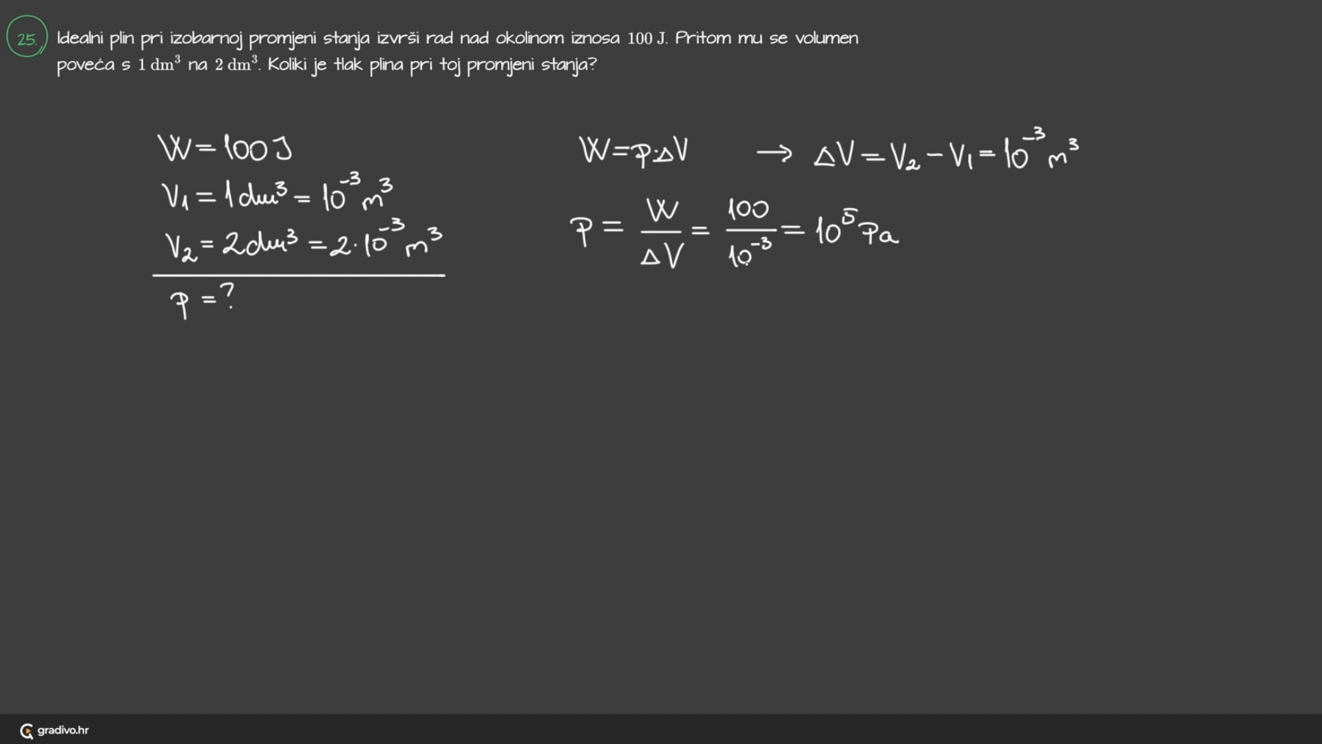 U p-v grafu promjena stanja idealnog plina, rad predstavlja površinu ispod grafa. Računamo ga po formuli: