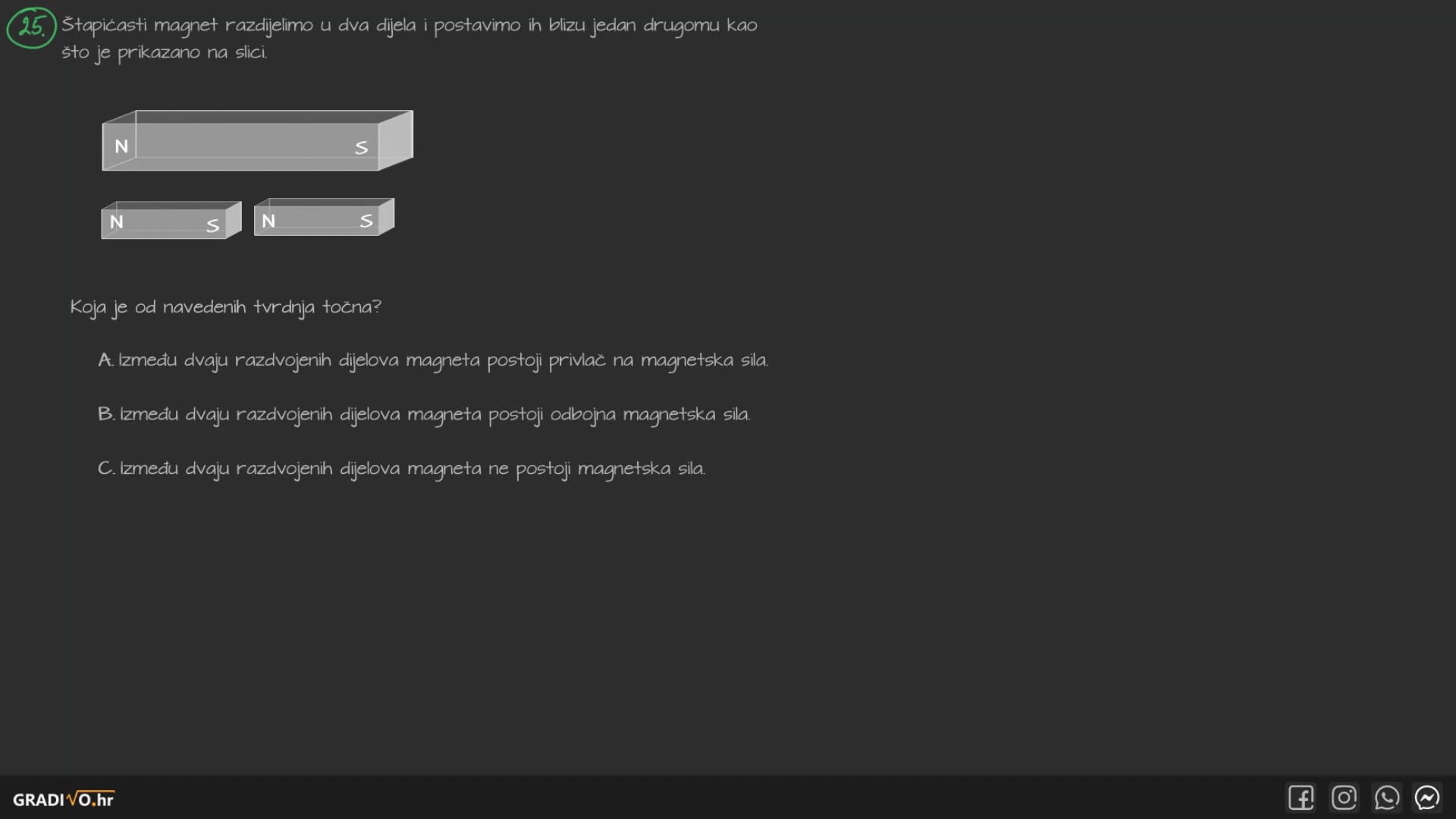 Kada približimo dva magneta oni se mogu odbijati ili privlačiti ovisno o orijentaciji njihovih polova.