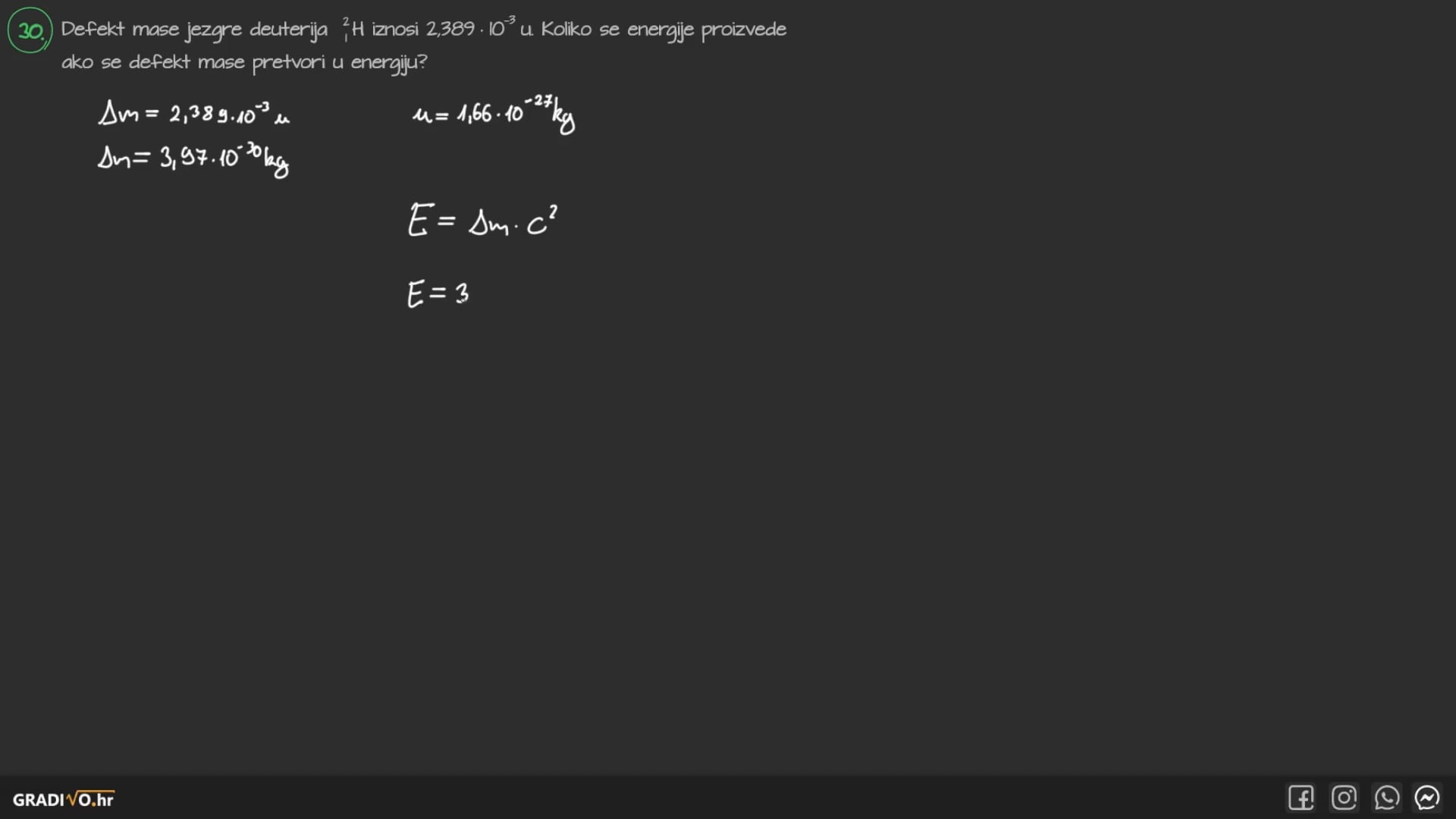 Prilikom spajanja slobodnih nukleona u jezgru oslobađa se energija koju zovemo