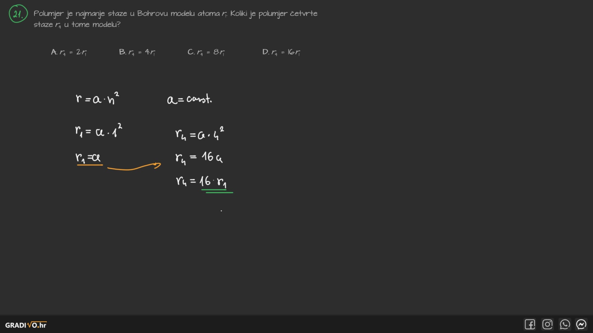 Polumjer n-te staze u Bohrovom modelu atoma proporcionalan je kvadratu broja staze i računamo ga po formuli: