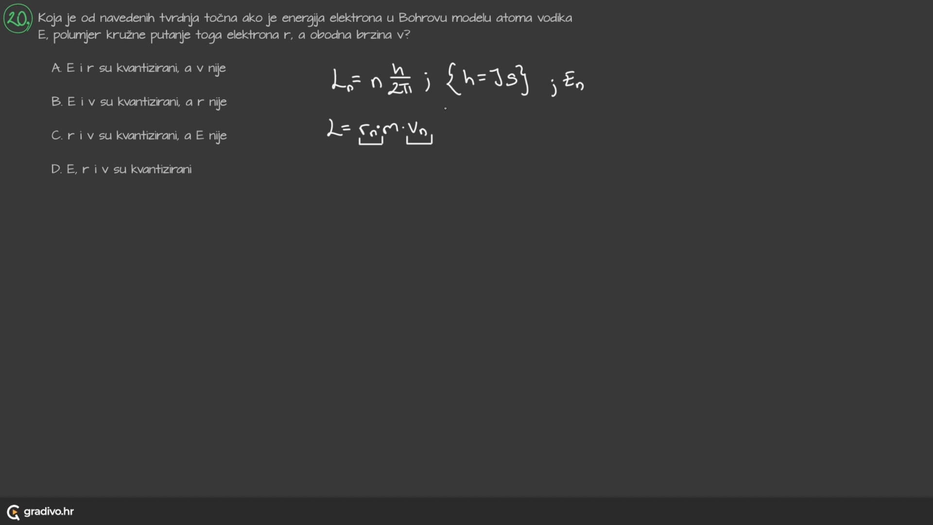 Bohr je promatrao vodikove atome i kvantizirao putanje elektrona relacijom: