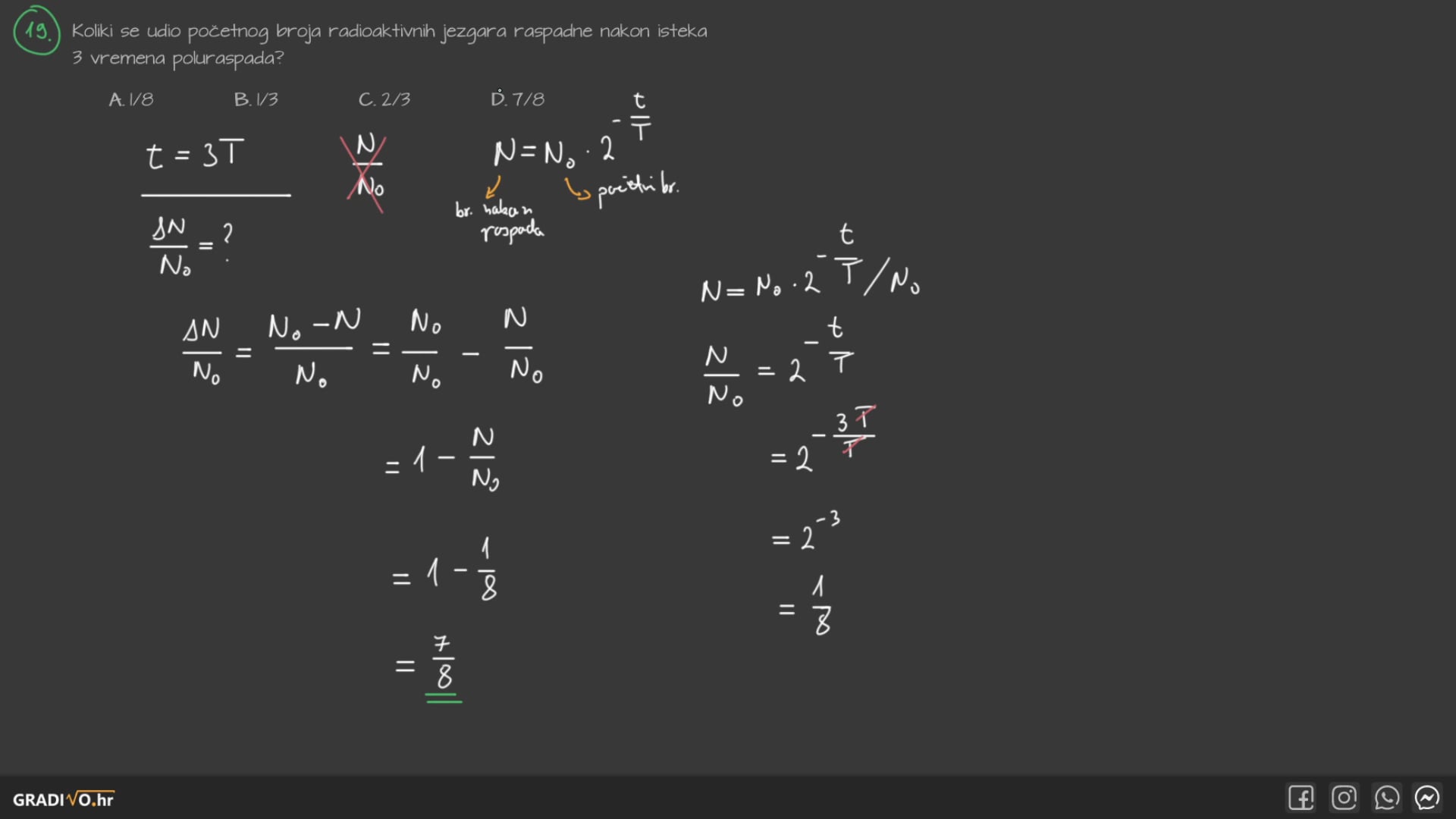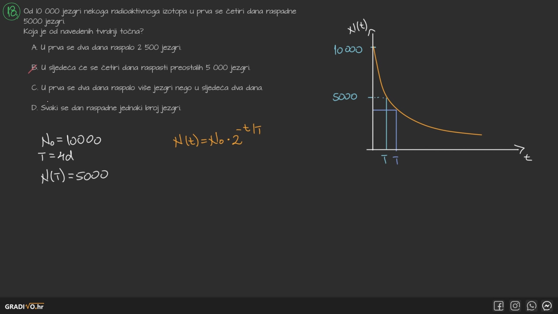 Ako promatramo ovisnost broja atomski jezgri u vremenu, ovisnost trenutnog broja jezgri o vremenu jednaka je: