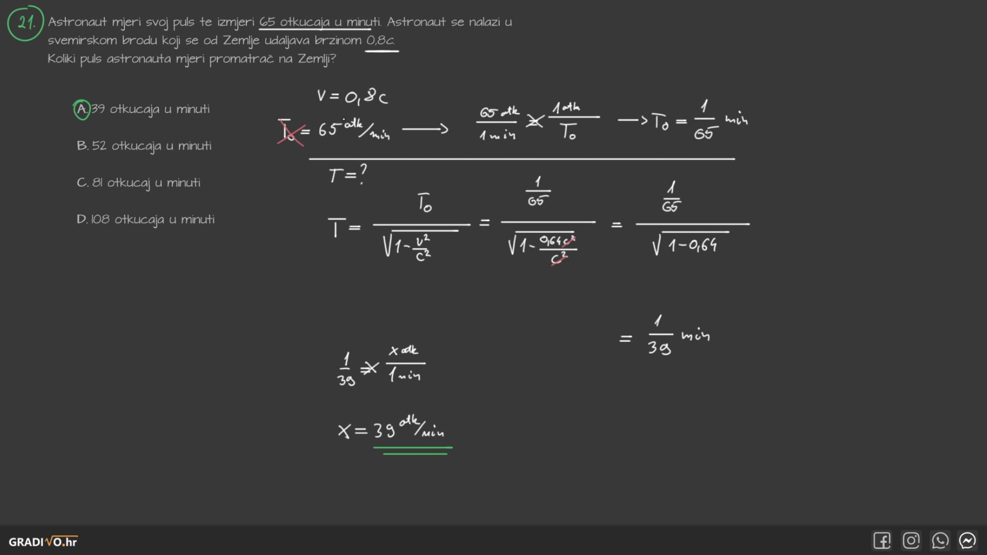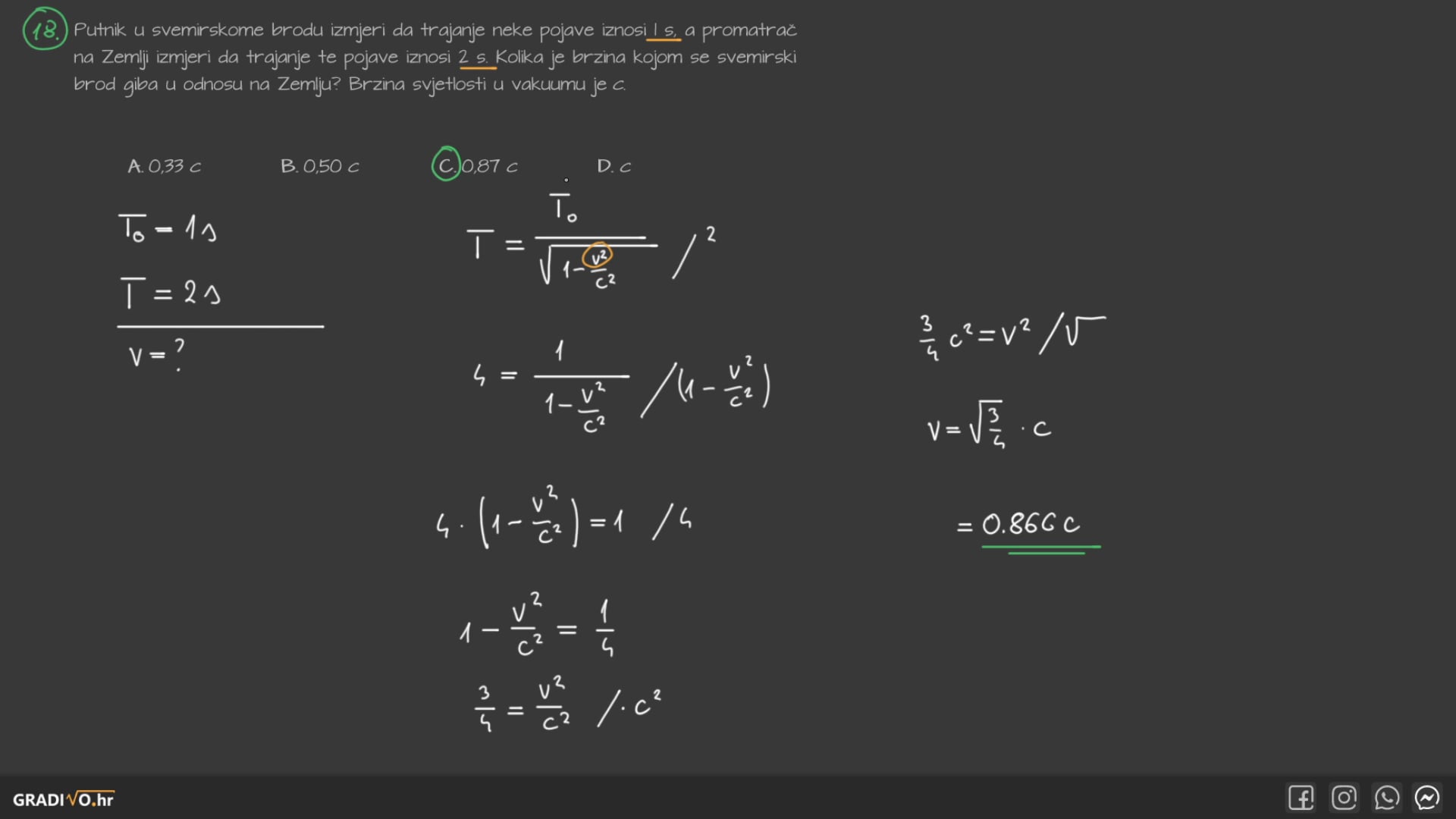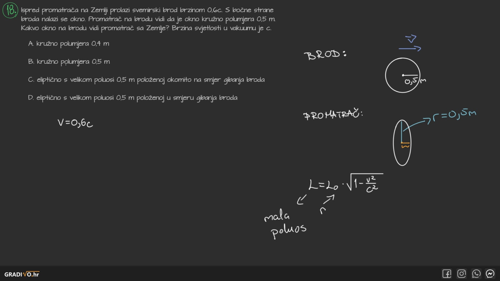 a) Brzina svjetlosti \(c\) je maksimalna vrijednost brzine koju svjetlost može imati i jednaka je u svim referentnim sustavima u gibanju.