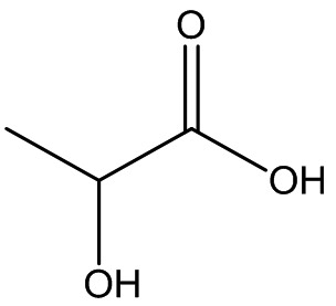 Na prikazanoj strukturnoj formuli molekule mliječne kiseline zvjezdicom označite asimetrično supstituirani ugljikov atom.