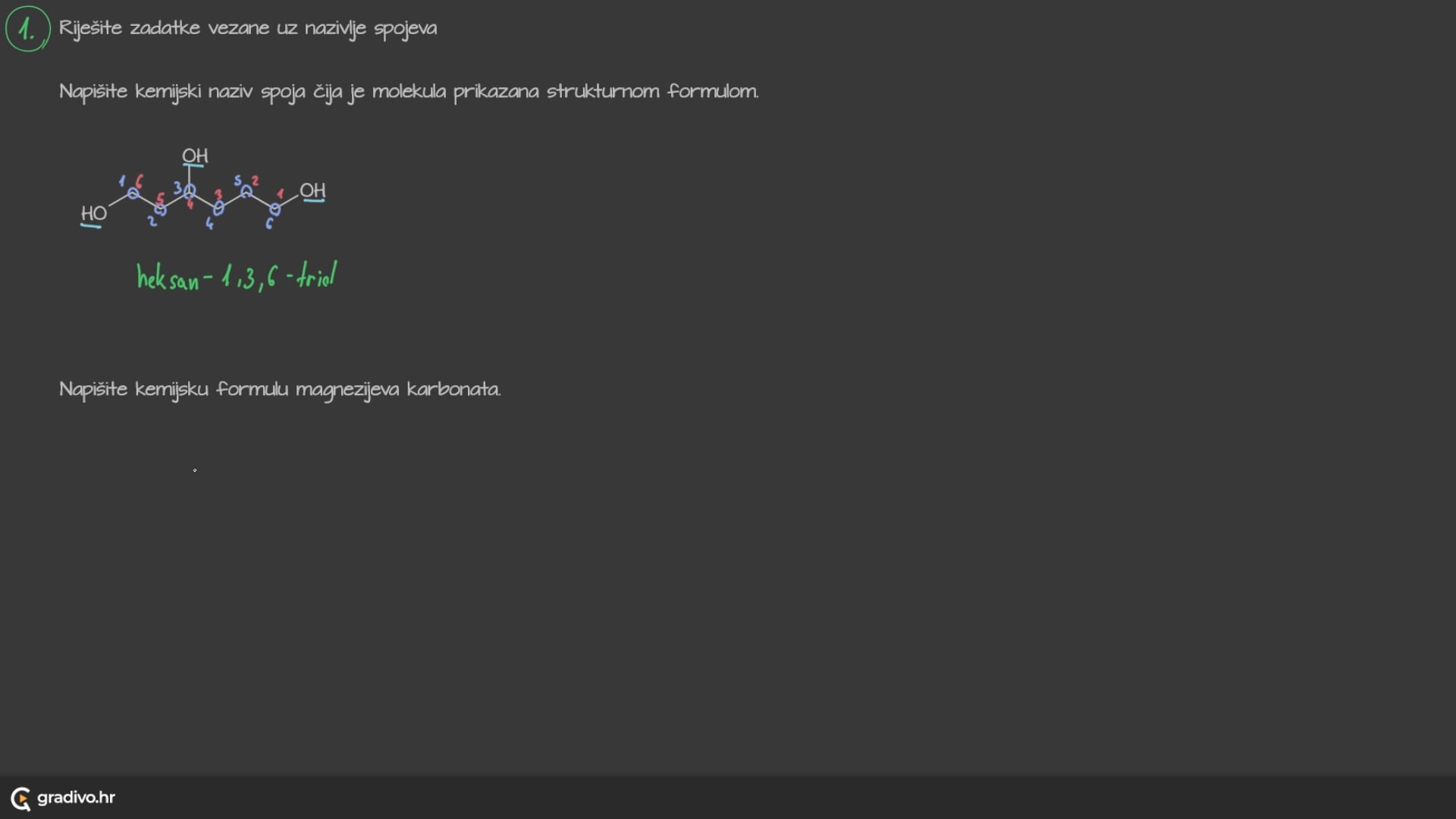 Smjer brojanja najduljeg lanca počinje ugljikovim atomom na kojeg je vezana hidroksilna skupina.