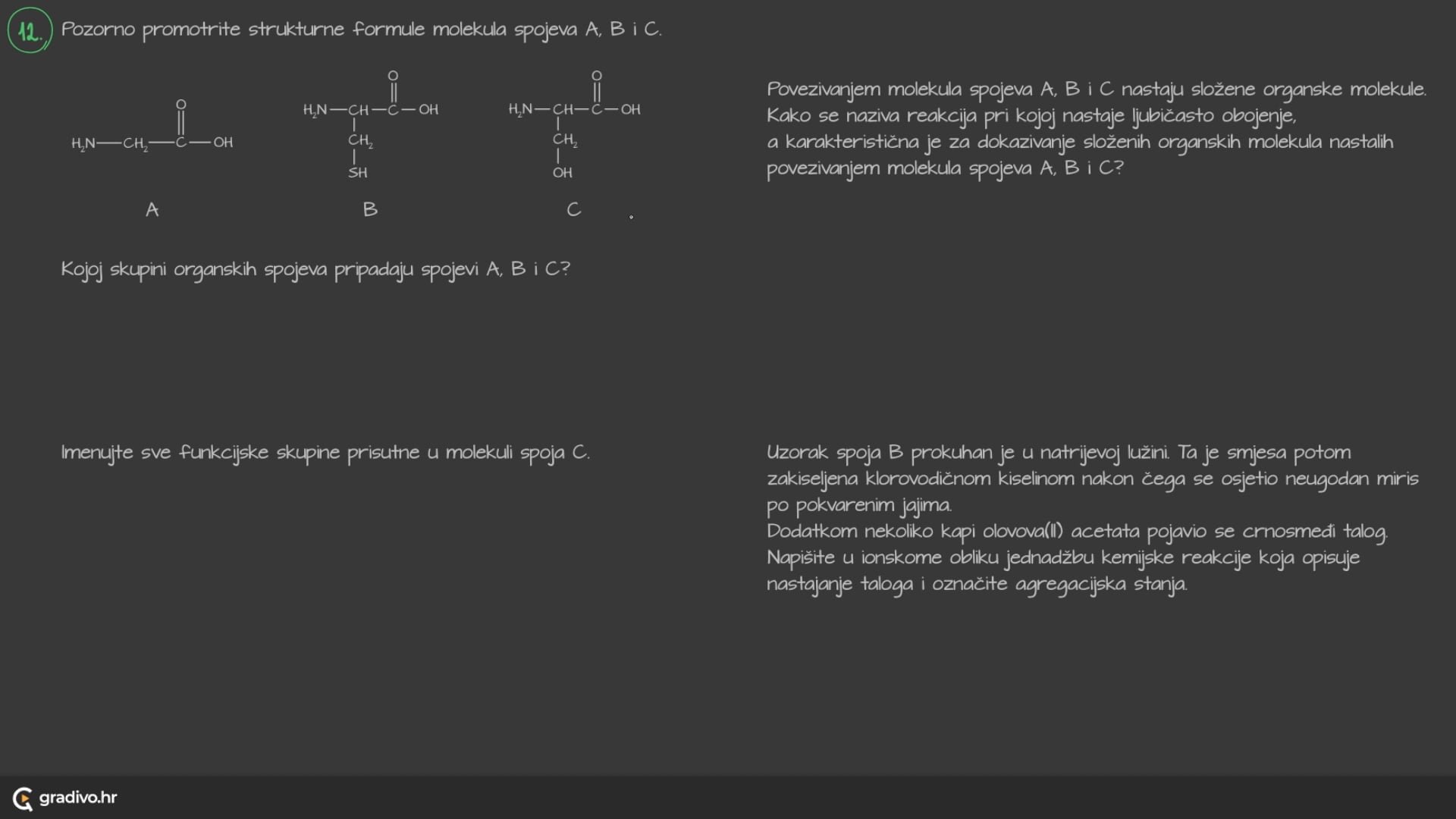 Aminokiseline su osnovne gradivne jedinice proteina. Svaka aminokiselina građena je od atoma ugljika na koji su vezani atom vodika, amino-skupina, karboksilna skupina te bočni ogranak po kojemu se aminokiseline međusobno razlikuju.