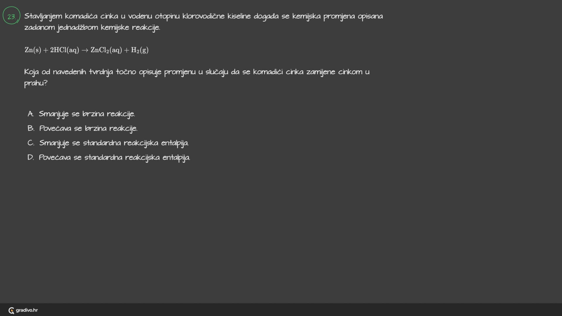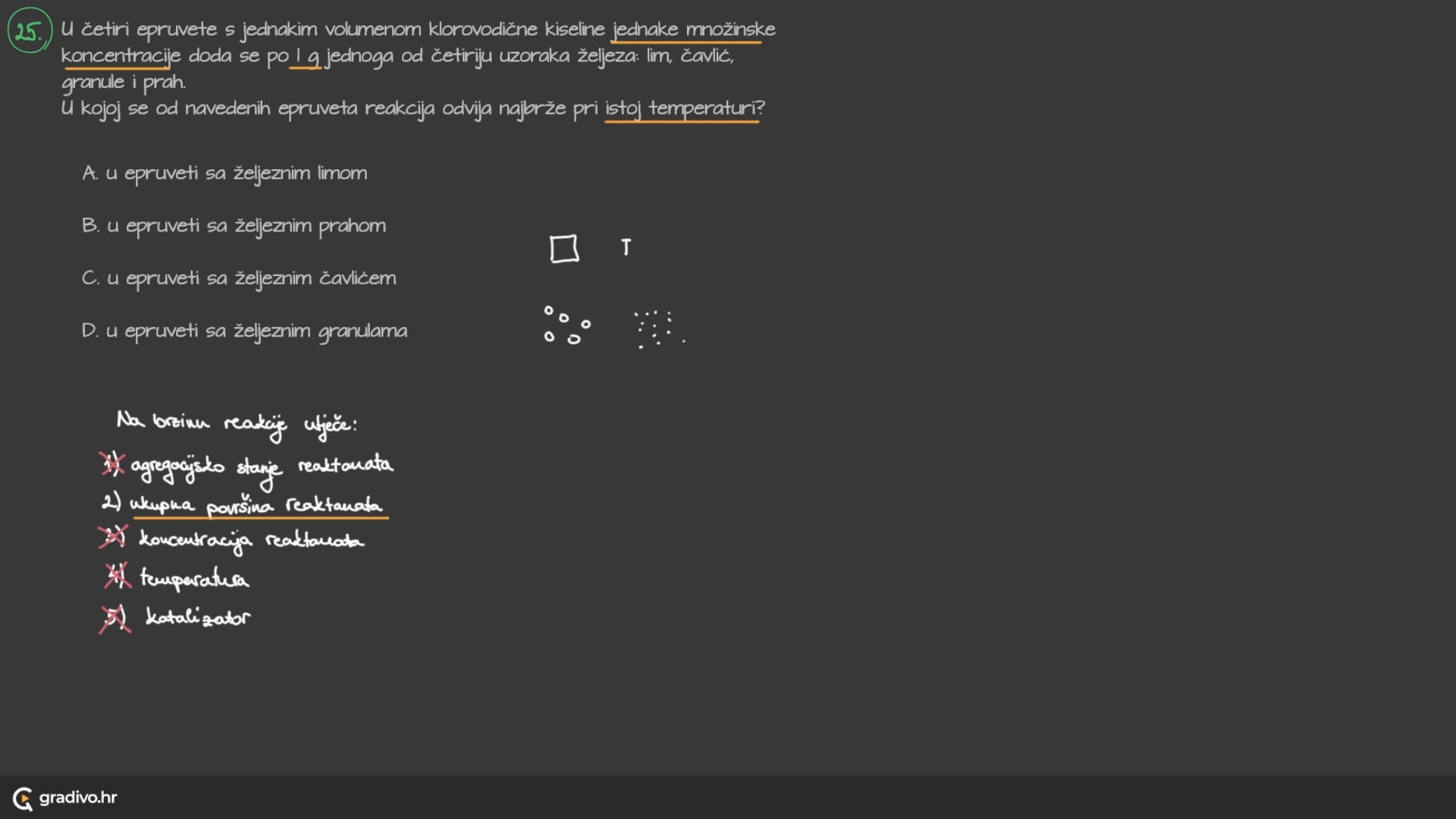 S druge strane, ako imamo manje čestice ta reakcija biti će brža zbog toga što je puno manje tih slojeva čestica.