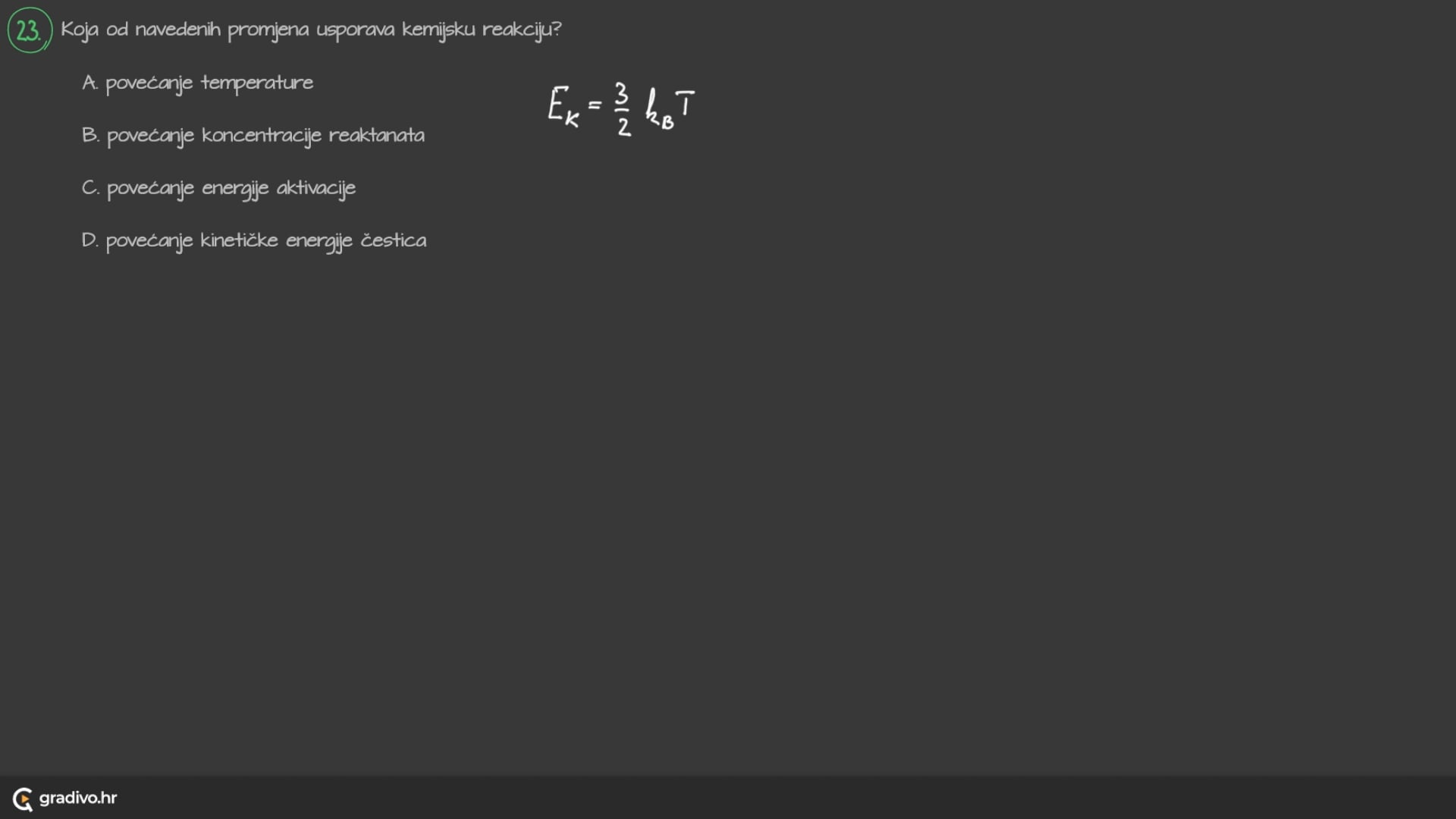 Brzina kemijske reakcije ovisi o učestalosti uspješnih sudara (broju sudara u nekom vremenu) i energiji reaktanata.