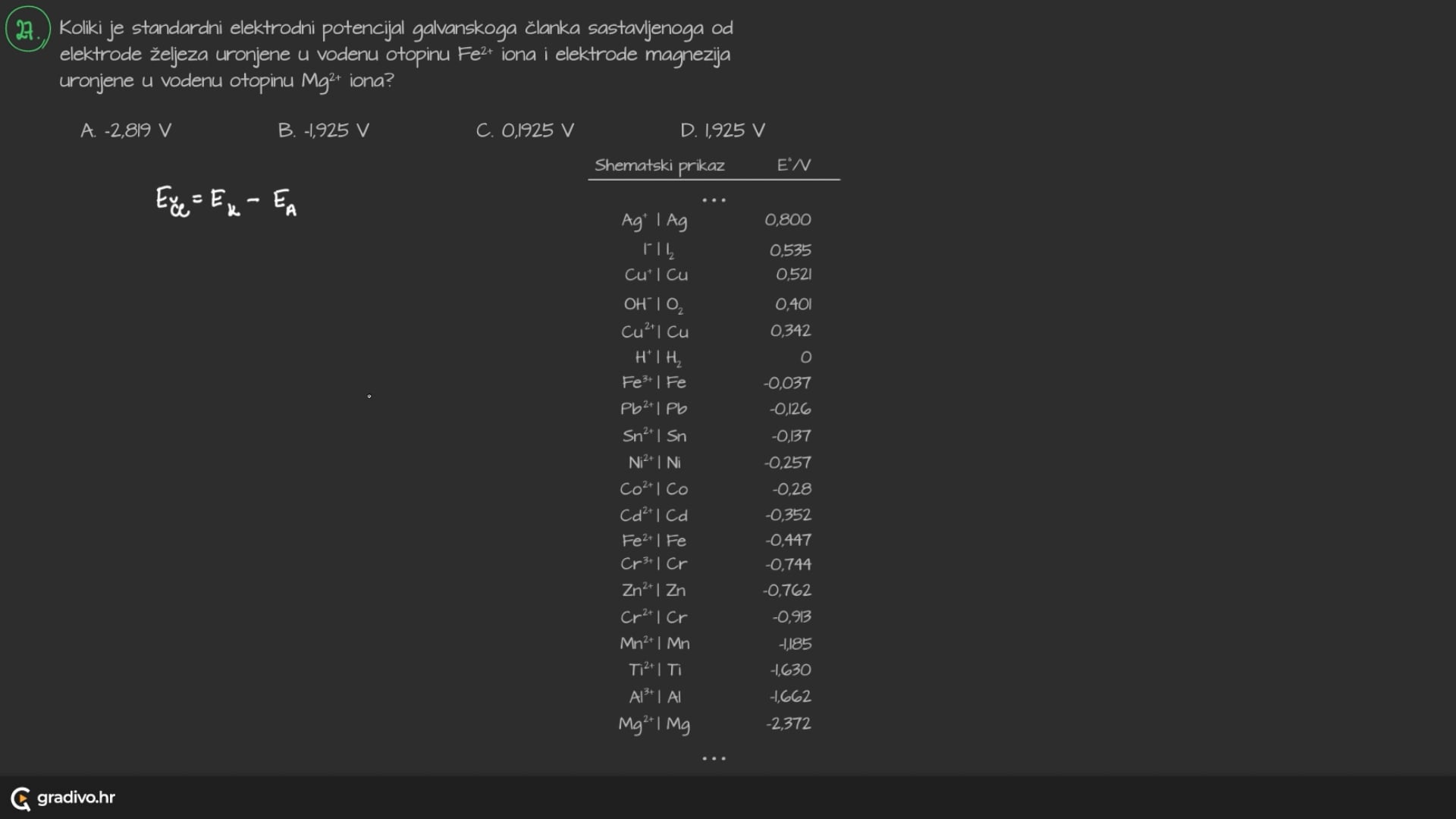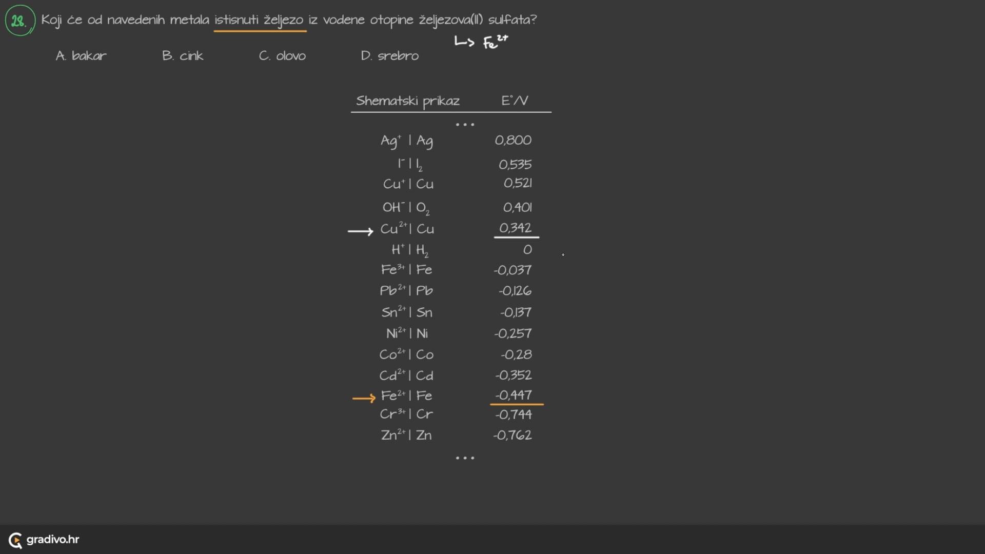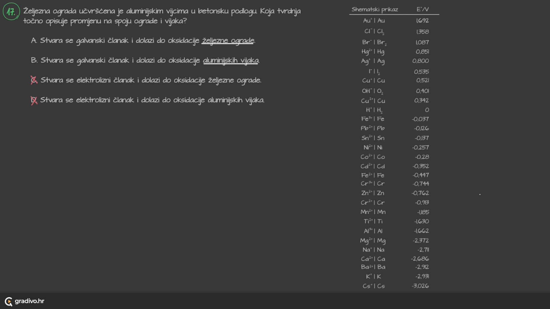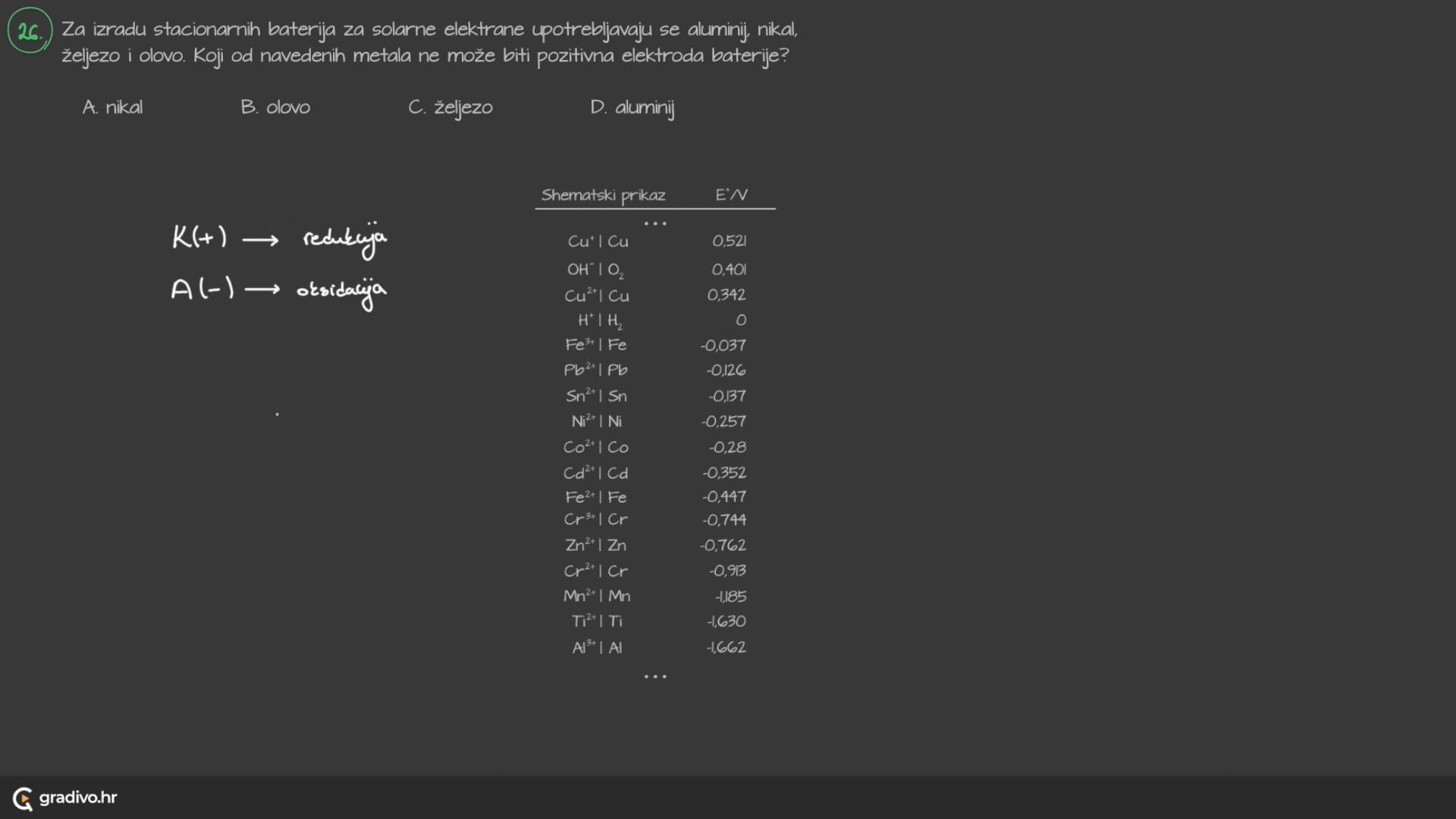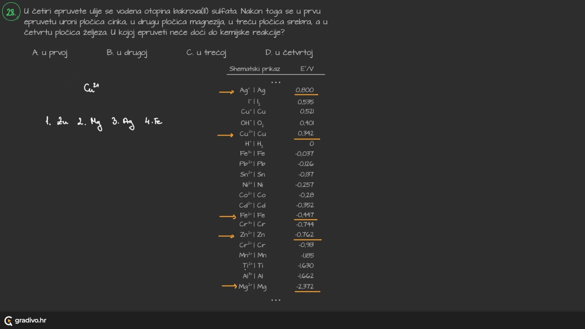 Na osnovi vrijednosti njihovih standardnih elektrodnih potencijala (E° ) načinjen je