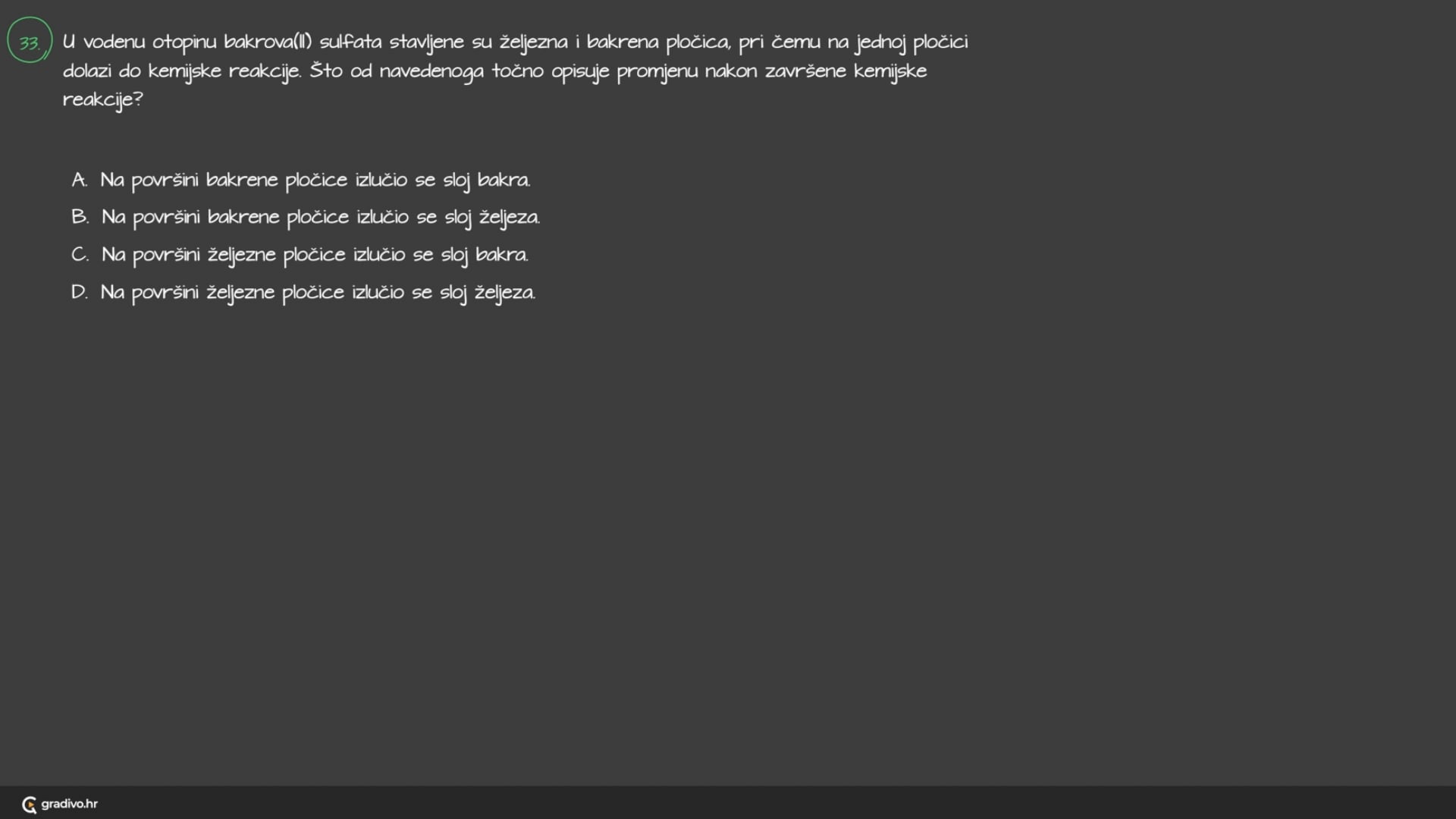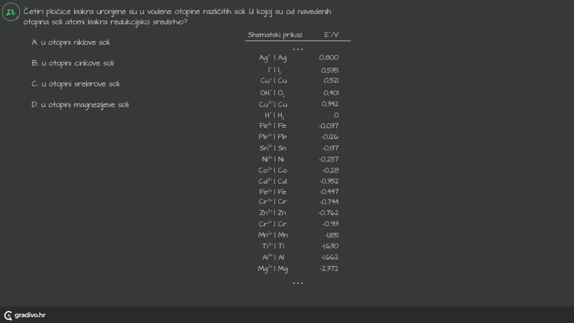 Metali iz otopina soli izlučit će sve one metale koji su u nizu elemenata poredanih po reaktivnosti desno od njih.