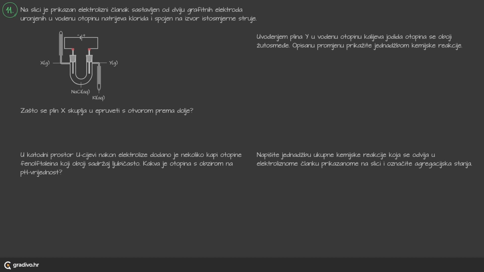 Produkti elektrolize zasićene vodene otopine natrijeva klorida (NaCl) su: