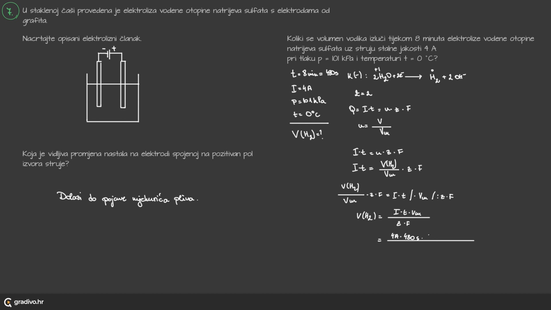 U vodu je potrebno dodati malo razrijeđene sumporne kiseline (H2SO4) da bi joj se povećala vodljivost.