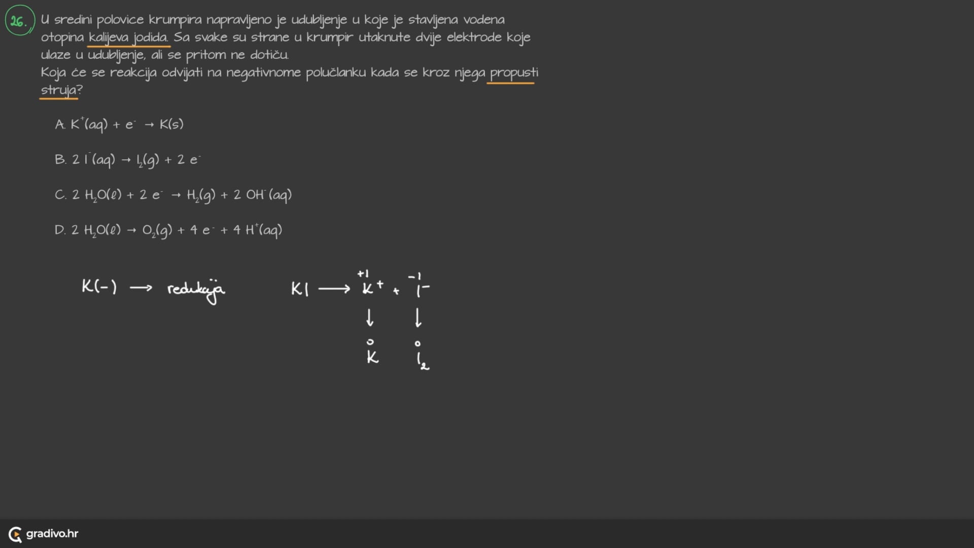 Tada se na elektrodama reduciraju ili oksidiraju oni ioni ili molekule za čiju je reakciju potrebna manja (<) energija.