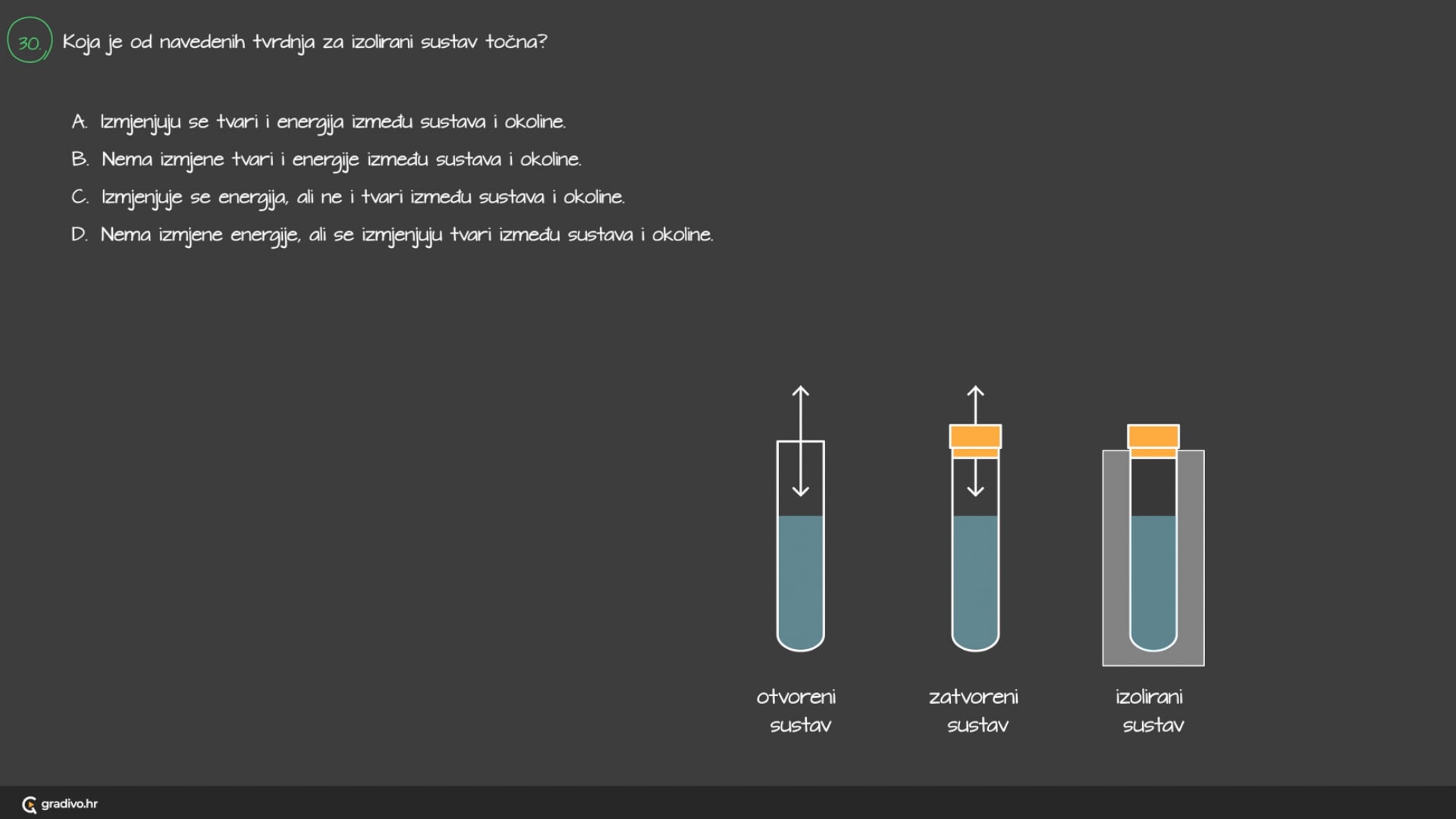 - zatvoreni – moguća je samo izmjena energije između sustava i okoline (začepljena boca koju zagrijavamo)