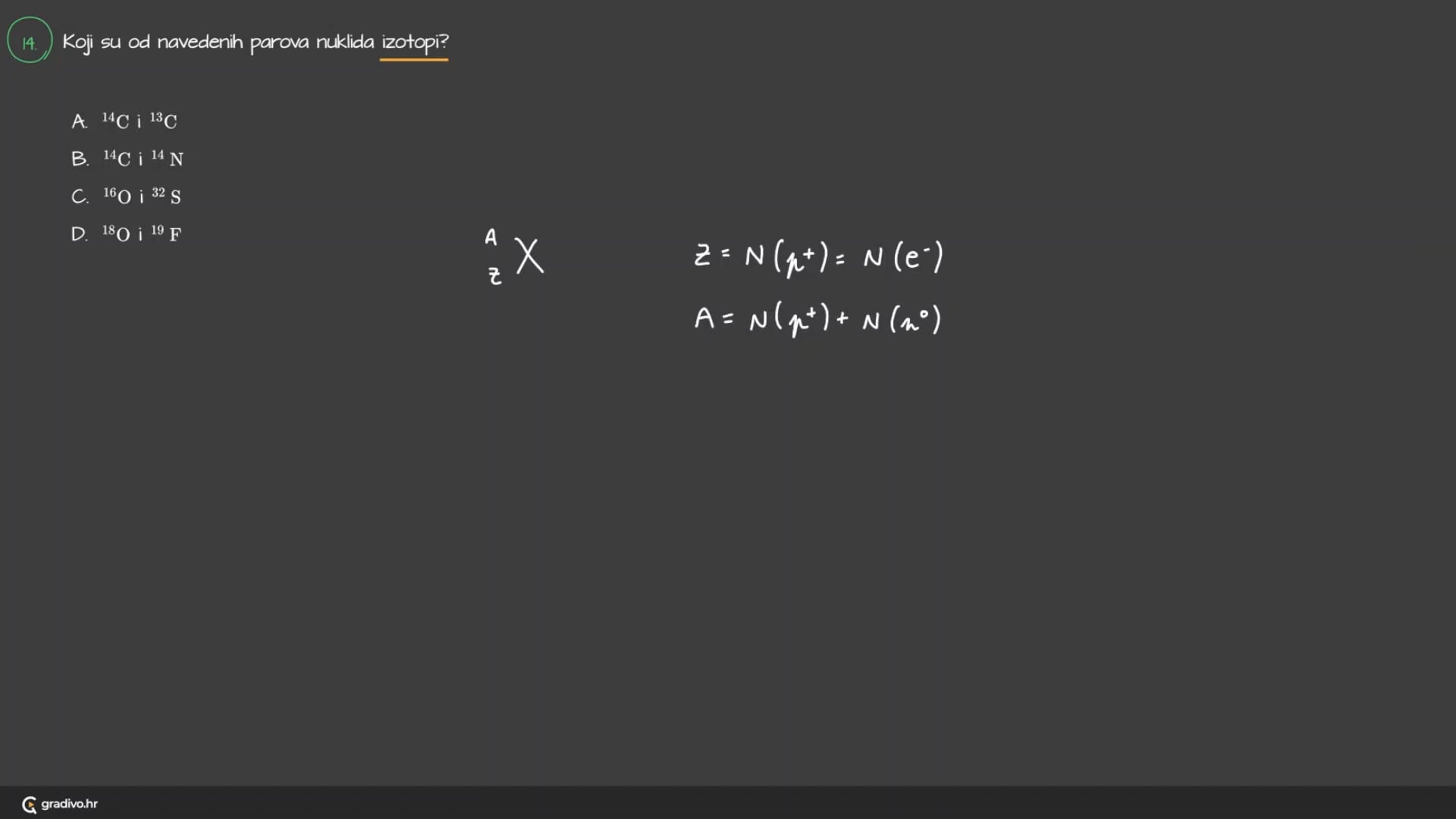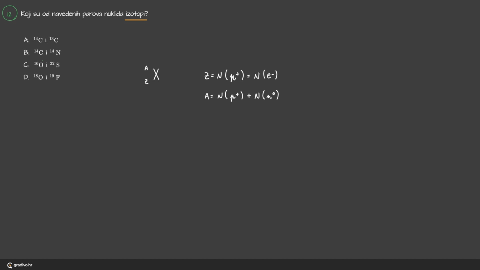Atome određenog protonskoga broja, Z, i određenog nukleonskog broja, A, nazivamo nuklidima.