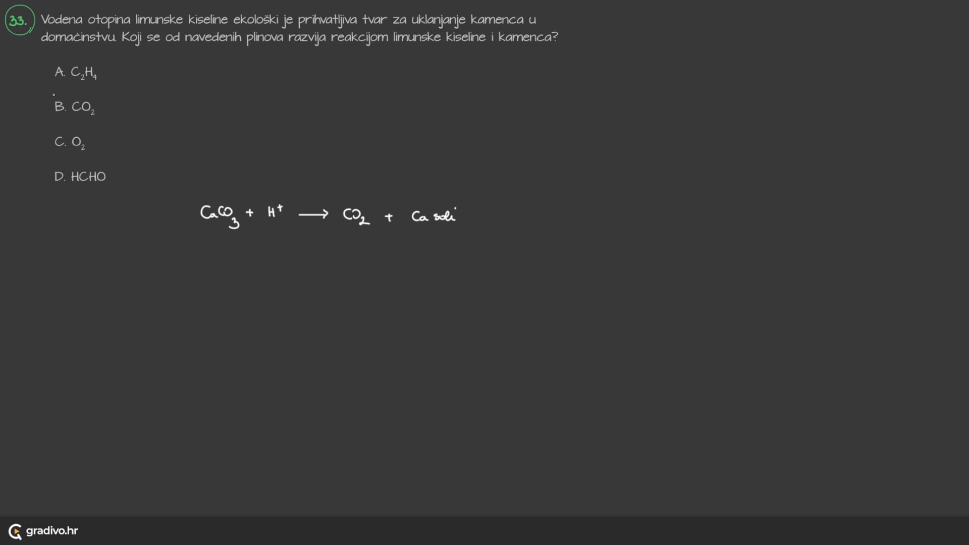 2HCOOH(aq) + Ca(OH)2(s) → 2H2O(l) + (HCOO)2Ca(aq) (sol se zove kalcijev metanoat ili kalcijev formijat)