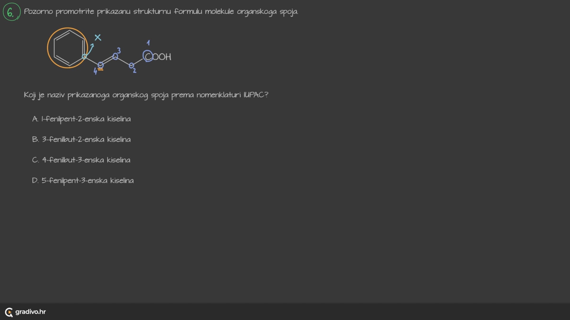 Karboksilna skupina uvijek je na početku ugljikovodičnog lanca i numeriranje najduljeg lanca počinje od nje.