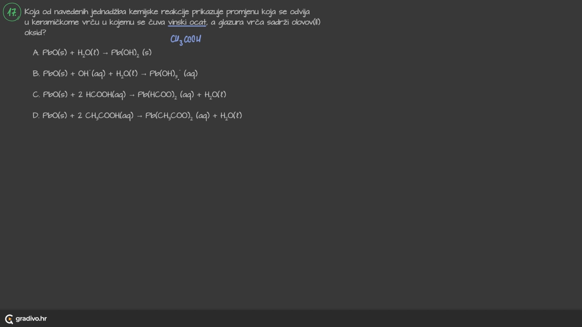 2CH3COOH(aq) + 2K(s) → H2(g) + 2CH3COOK(aq) (sol se zove kalijev etanoat ili kalijev acetat)