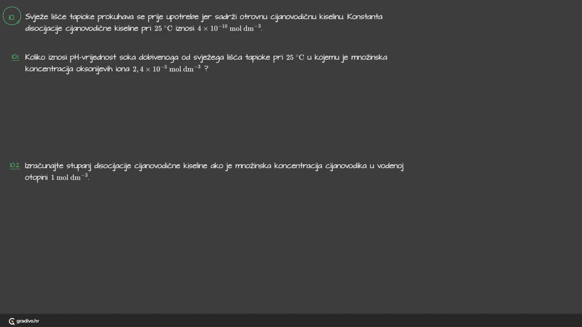 Kako se ovdje radi o slaboj kiselini, to znači da je koncentracija iona jako mala, a množinski udio vode jako velik, množinski udio vode je biti će jednak 1 pa izraz glasi: