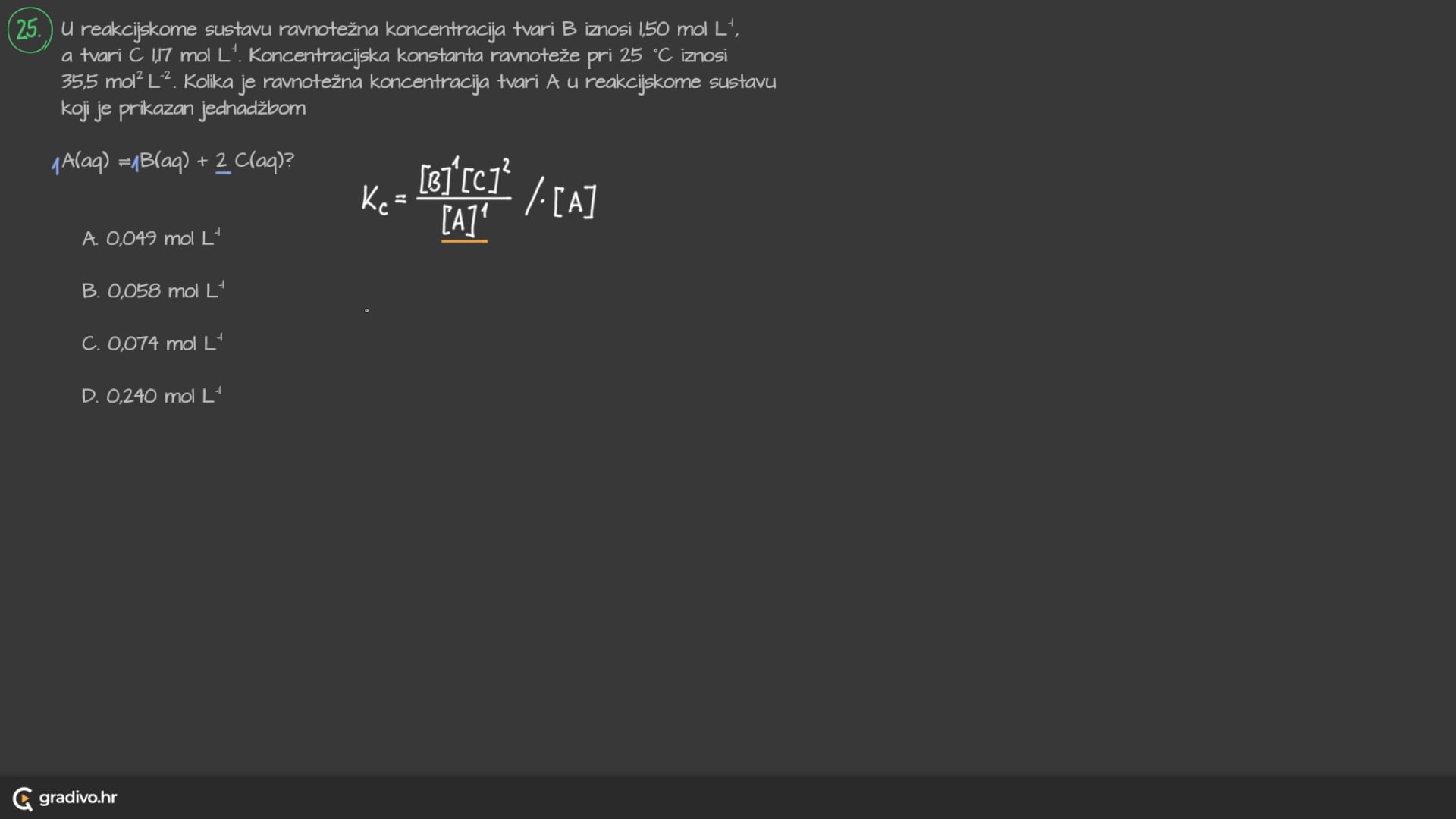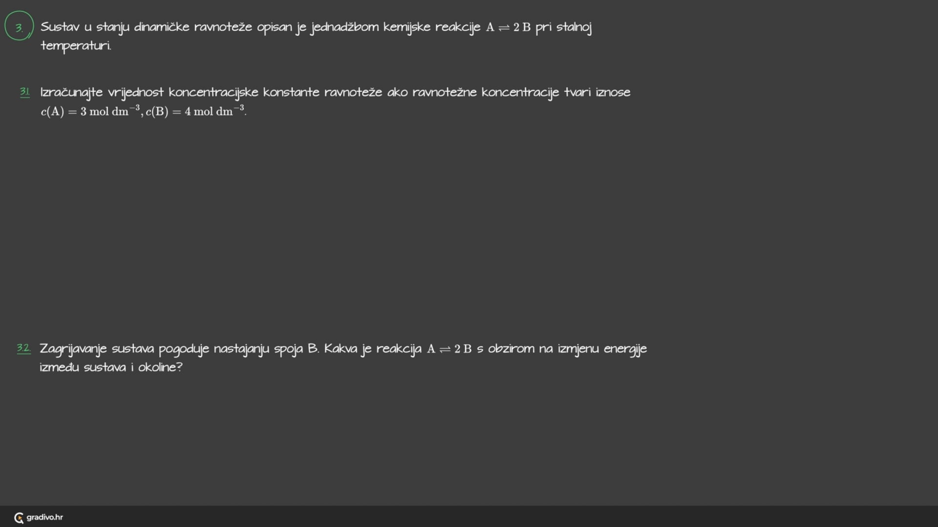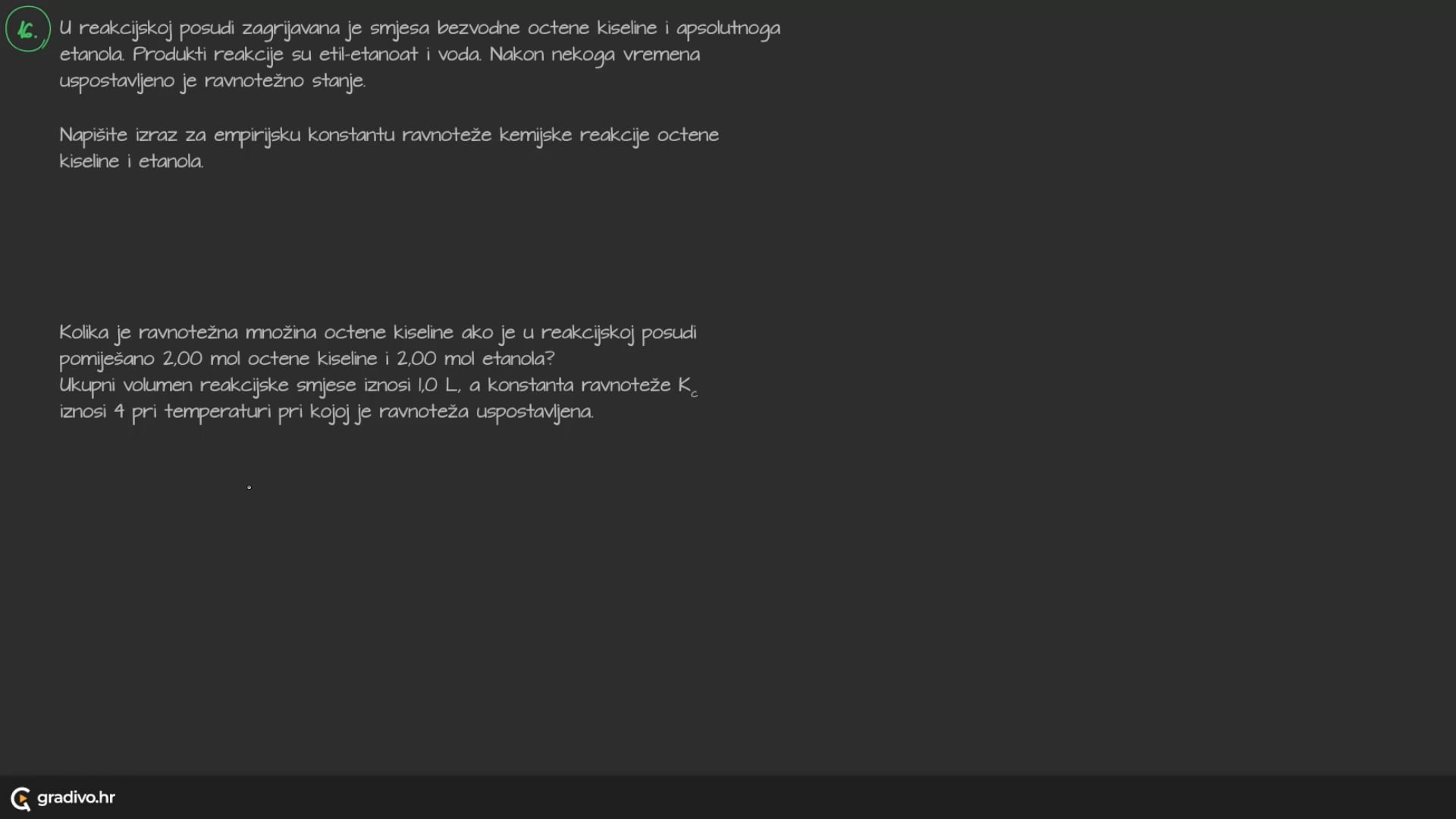 Ako je brojčana vrijednost konstante ravnoteže, Kc: