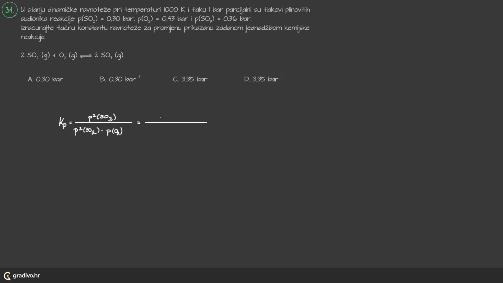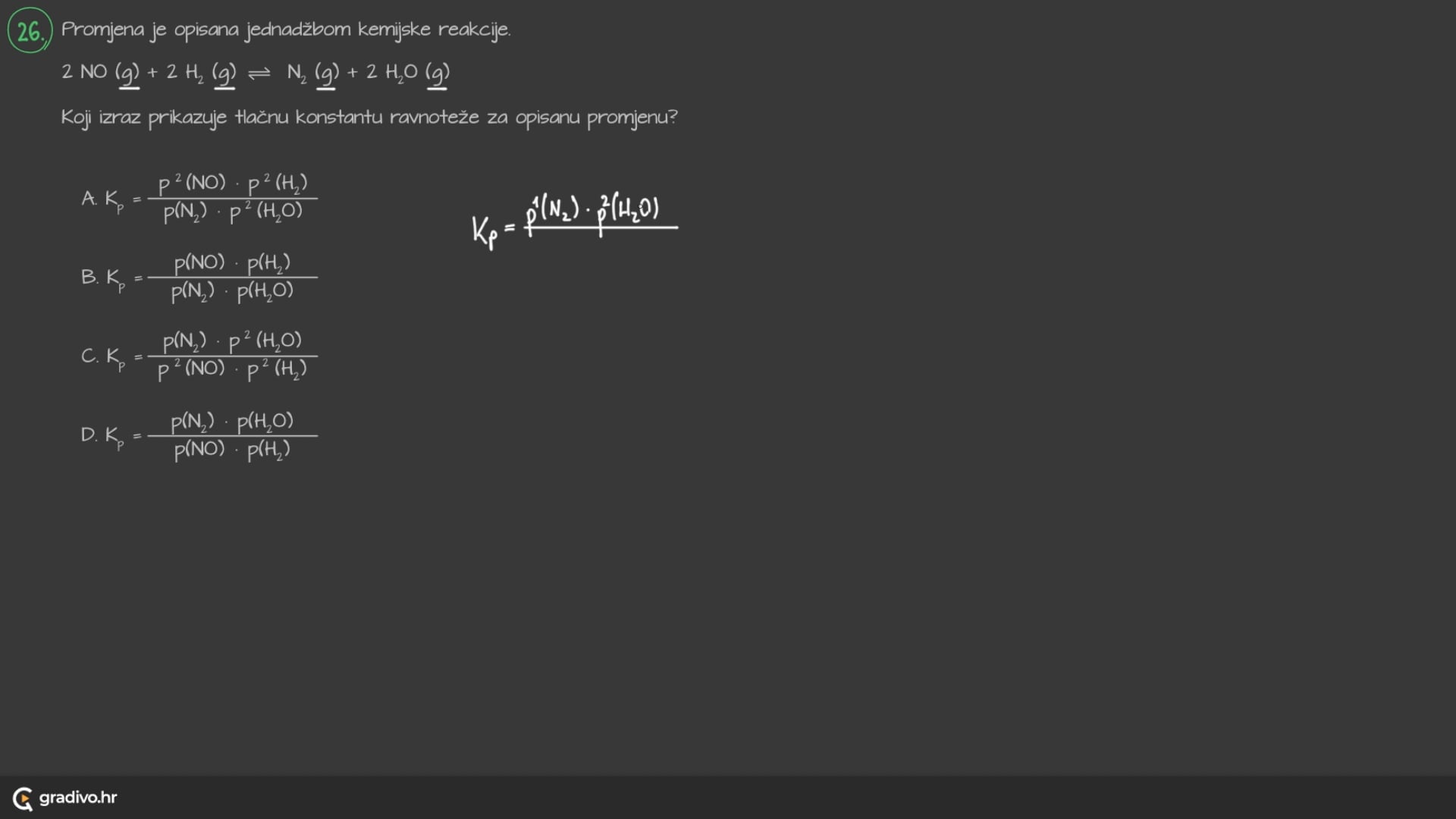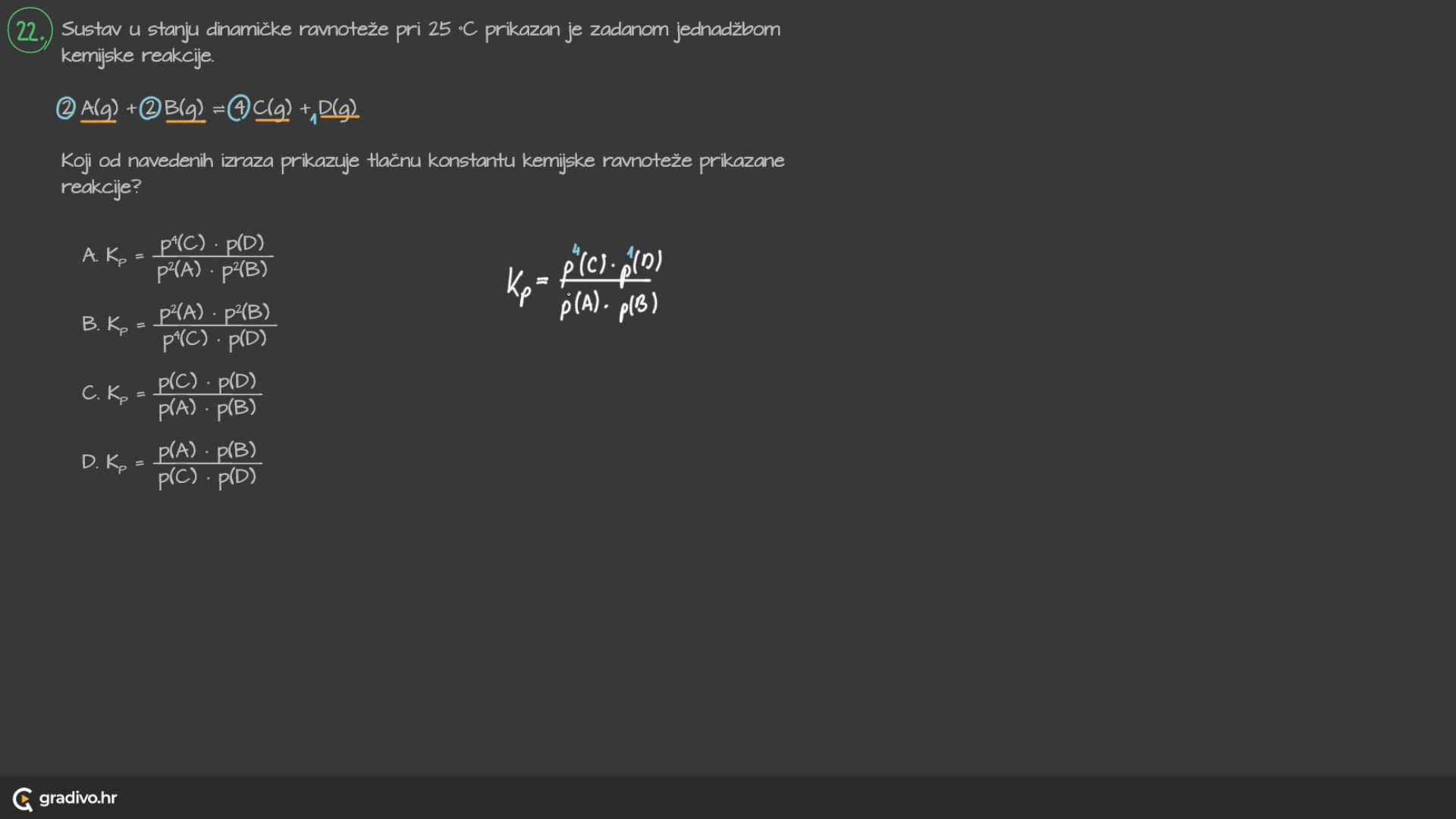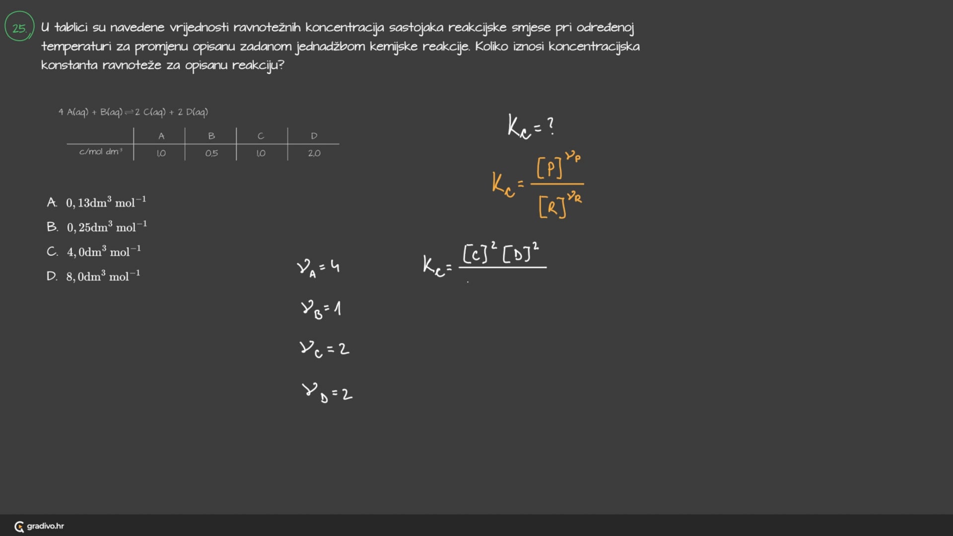 Ako je brojčana vrijednost konstante ravnoteže, Kc: